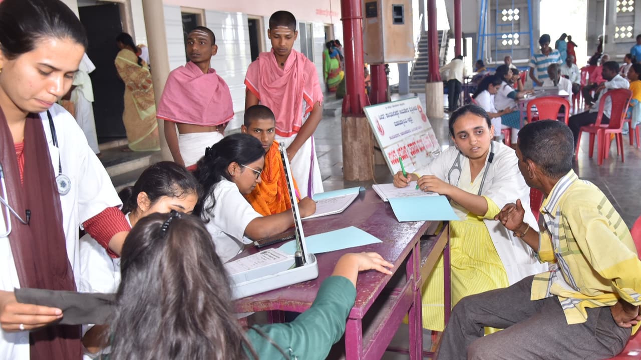 ಮಹಾವಿದ್ಯಾಲಯದ ಆಡಳಿತಾಧಿಕಾರಿ ವಿ.ಎಚ್.ಕೆ. ಹಿರೇಮಠ, ಪ್ರಾಚಾರ್ಯ ಡಾ. ಸಿ.ಎನ್. ಗೌಡರ ತಂಡದಿಂದ ಉಚಿತ ಬೃಹತ್ ಆರೋಗ್ಯ ಶಿಬಿರದಲ್ಲಿ 245ಕ್ಕೂ ಹೆಚ್ಚು ರೋಗಿಗಳ ತಪಾಸಣೆ ಜರುಗಿತು. ಹಿಮೋಗ್ಲೋಬಿನ್, ರಕ್ತದ ಗುಂಪು, ಸಕ್ಕರೆ ಪ್ರಮಾಣ, ಥೈರಾಯ್ಡ್ ಪರೀಕ್ಷೆ ಎಚ್ಬಿಎ1ಸಿ (ಸಕ್ಕರೆ ಕಾಯಿಲೆ ಪರೀಕ್ಷೆ), ಅಲ್ಟ್ರಾಸೋನೋಗ್ರಫಿ ಪರೀಕ್ಷೆ ಮಾಡಿಸಿಕೊಂಡರು. ಪ್ರಸೂತಿ ಹಾಗೂ ಸ್ತ್ರೀರೋಗ, ಡಯಾಬಿಟಿಸ್ ಮತ್ತು ಹೃದಯರೋಗ, ಎಲುಬು ಮತ್ತು ಕೀಲು, ಶಸ್ತ್ರಚಿಕಿತ್ಸಾ ಹಾಗೂ ನೇತ್ರ ಚಿಕಿತ್ಸಾ ತಜ್ಞ ವೈದ್ಯರು ಶಿಬಿರದಲ್ಲಿ ಭಾಗವಹಿಸಿ ಸೇವೆ ನೀಡಿದರು. ಸುಮಾರು ₹25 ಸಾವಿರಕ್ಕೂ ಹೆಚ್ಚು ಮೊತ್ತದ ಔಷಧಗಳನ್ನು ಉಚಿತವಾಗಿ ವಿತರಿಸಲಾಯಿತು.ಹಾವೇರಿಯ ಸೃಜನ ಆಪ್ಟಿಕಲ್ ಸಹಯೋಗದಲ್ಲಿ ಹುಬ್ಬಳ್ಳಿಯ ಜಯಪ್ರಿಯ ಕಣ್ಣಿನ ಆಸ್ಪತ್ರೆಯವರು ನಡೆಸಿದ ಉಚಿತ ಕಣ್ಣಿನ ತಪಾಸಣೆಯಲ್ಲಿ 85ಕ್ಕೂ ಹೆಚ್ಚು ರೋಗಿಗಳು ಇದರ ಸದುಪಯೋಗ ಪಡೆದುಕೊಂಡರು.