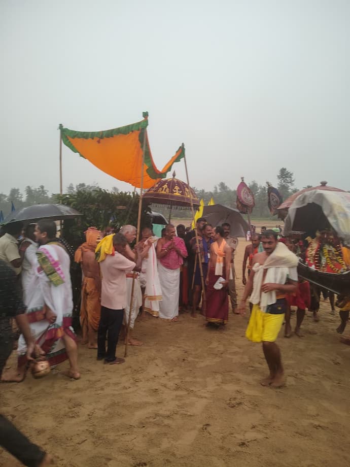 ವರುಣನ ಆರ್ಭಟ:ದೇವರ ಉತ್ಸವ ತೆರಳುವ ವೇಳೆ ಮೋಡಕವಿದ ವಾತಾವರಣವಿದ್ದು, ಕಡಲಂಚಿನಲ್ಲಿ ತೆರಳುತ್ತಿದ್ದಂತೆ ಗುಡುಗು ಮಿಂಚಿನೊಂದಿಗೆ ಮಳೆಯೂ ಅಬ್ಬರಿಸಿತು. ಅರ್ಧಗಂಟೆಗೂ ಅಧಿಕ ಕಾಲ ಸುರಿದ ಮಳೆಯಲ್ಲೇ ಉತ್ಸವ ಸಾಗಿದ್ದು, ಮರಳಿ ಬರುವ ವೇಳೆ ಮಳೆ ನಿಂತಿತ್ತು. ಮಳೆಯನ್ನ ಸಹ ಲೆಕ್ಕಿಸದೆ ಸಹಸ್ರಾರು ಸಂಖ್ಯೆಯಲ್ಲಿ ಜನರು ಸೇರಿದ್ದು ವಿಶೇಷವಾಗಿತ್ತು.