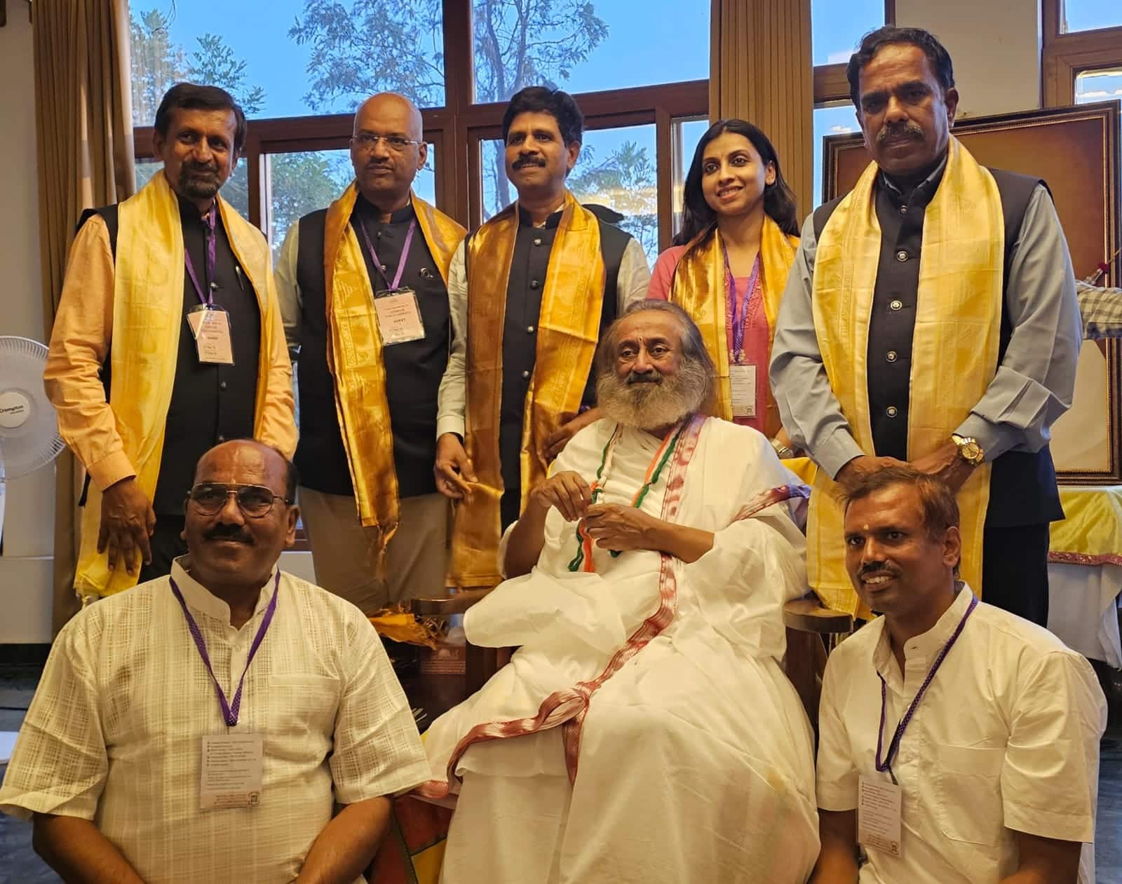 ಶಿವಮೊಗ್ಗ: ಬೆಂಗಳೂರಿನ ಆರ್ಟ್ ಆಫ್ ಲಿವಿಂಗ್ ಆಶ್ರಮದಲ್ಲಿ ಆಯೋಜಿಸಿದ್ದ ಸಮಾಜದ ಗಣ್ಯ ವ್ಯಕ್ತಿಗಳ ಭೇಟಿ ಕಾರ್ಯಕ್ರಮದಲ್ಲಿ ಶಿವಮೊಗ್ಗ ಜಿಲ್ಲಾ ವಾಣಿಜ್ಯ ಮತ್ತು ಕೈಗಾರಿಕಾ ಸಂಘದ ಪ್ರತಿನಿಧಿಗಳು ಶ್ರೀ ರವಿಶಂಕರ್ ಗುರೂಜಿ ಅವರೊಂದಿಗೆ ಸಮಾಲೋಚನೆ ನಡೆಸಿದರು.
