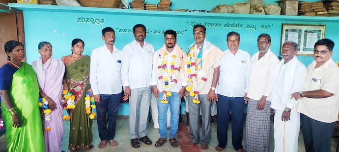 ಅಧ್ಯಕ್ಷರಾಗಿದ್ದ ಚಂದ್ರಪ್ಪ ಎ.ಕೆ. ರಾಜೀನಾಮೆಯಿಂದ ತೆರವಾಗಿದ್ದ ಅಧ್ಯಕ್ಷ ಸ್ಥಾನಕ್ಕೆ ಭಾನುವಾರ ಚುನಾವಣೆ ನಡೆಯಿತು, ಶಿವಮೂರ್ತಿ ಬಿ.ಜಿ. ಅವರೊಬ್ಬರೇ ಅಧ್ಯಕ್ಷ ಸ್ಥಾನಕ್ಕೆ ನಾಮಪತ್ರ ಸಲ್ಲಿಸಿದ್ದರು. ಅಂತೆಯೇ ಉಪಾಧ್ಯಕ್ಷ ಚಂದ್ರಶೇಖರಪ್ಪ ಪಿ. ರಾಜೀನಾಮೆಯಿಂದ ತೆರವಾಗಿದ್ದ ಸ್ಥಾನಕ್ಕೆ ಮಂಜುನಾಥ ಕೆ.ಕೆ. ಅವರೊಬ್ಬರೇ ಉಮೇದುವಾರಿಕೆ ಸಲ್ಲಿಸಿದ್ದರು. ಆದ್ದರಿಂದ ಚುನಾವಣಾಧಿಕಾರಿಯಾಗಿದ್ದ ಸಹಕಾರ ಅಭಿವೃದ್ದಿ ಅಧಿಕಾರಿ ನವೀನ್ ಕುಮಾರ್ ಅವರು ಶಿವಮೂರ್ತಿ ಬಿ.ಜಿ. ಅಧ್ಯಕ್ಷ, ಮಂಜುನಾಥ ಉಪಾಧ್ಯಕ್ಷರಾಗಿ ಅವಿರೋಧ ಆಯ್ಕೆಯಾಗಿದ್ದಾರೆ ಎಂದು ಘೋಷಿಸಿದರು.ಸಂಘದ ನಿರ್ದೇಶಕರು, ಕಾರ್ಯದರ್ಶಿ ಹನುಮಂತಪ್ಪ ಆರ್., ಗ್ರಾಮದ ಮುಖಂಡರು ನೂತನ ಅಧ್ಯಕ್ಷ ಮತ್ತು ಉಪಾಧ್ಯಕ್ಷರನ್ನು ಅಭಿನಂದಿಸಿದರು.