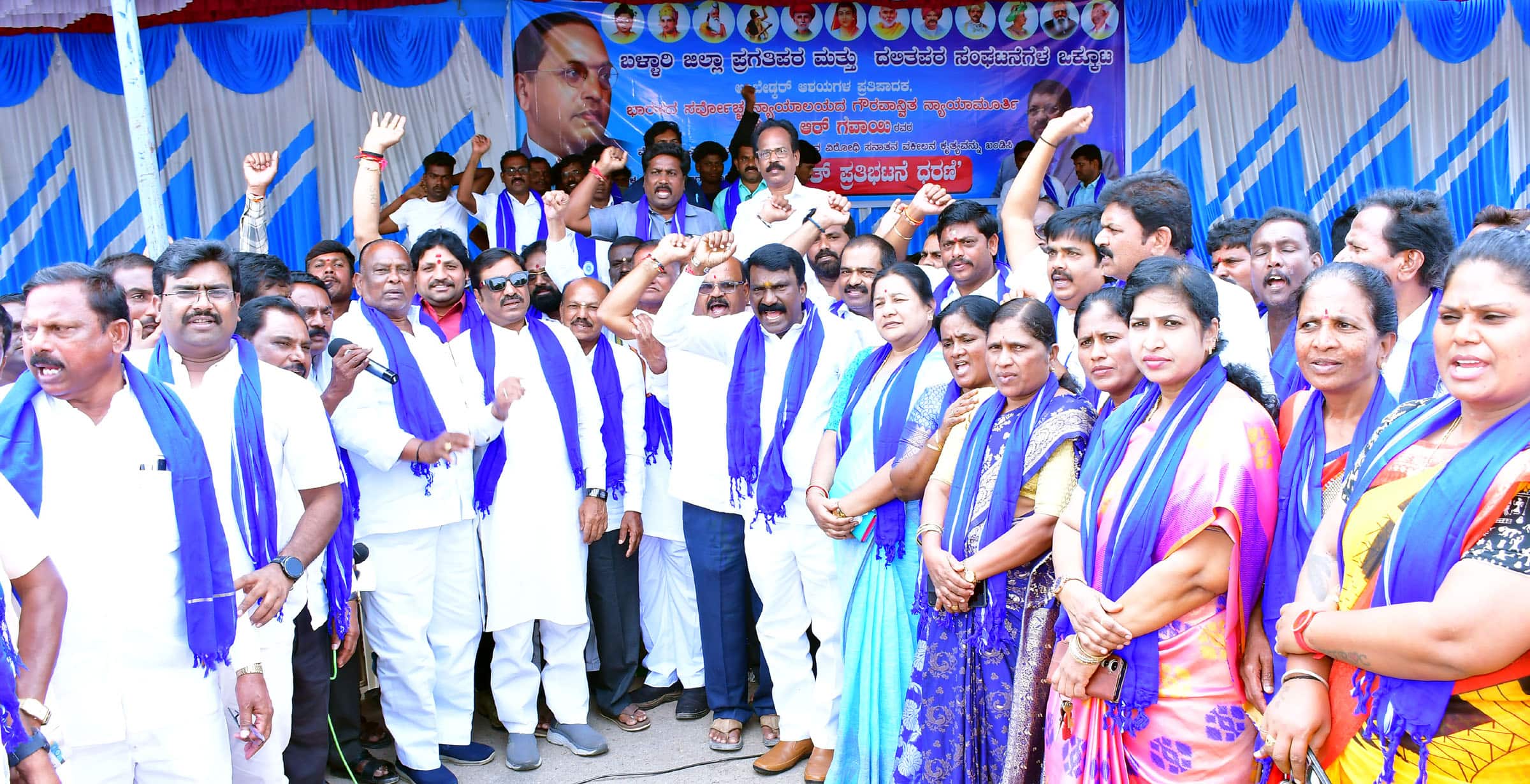 ಬಳ್ಳಾರಿ: ಸುಪ್ರೀಂಕೋರ್ಟ್ ಮುಖ್ಯ ನ್ಯಾಯಮೂರ್ತಿ ಬಿ.ಆರ್.ಗವಾಯಿ ಮೇಲೆ ಶೂ ಎಸೆದ ವಕೀಲನ ಕೃತ್ಯ ಖಂಡಿಸಿ ಬಳ್ಳಾರಿ ಜಿಲ್ಲಾ ಪ್ರಗತಿಪರ ಹಾಗೂ ದಲಿತಪರ ಸಂಘಟನೆಗಳ ಒಕ್ಕೂಟದಿಂದ ನಗರದಲ್ಲಿ ಪ್ರತಿಭಟನೆ ಹಮ್ಮಿಕೊಳ್ಳಲಾಯಿತು.