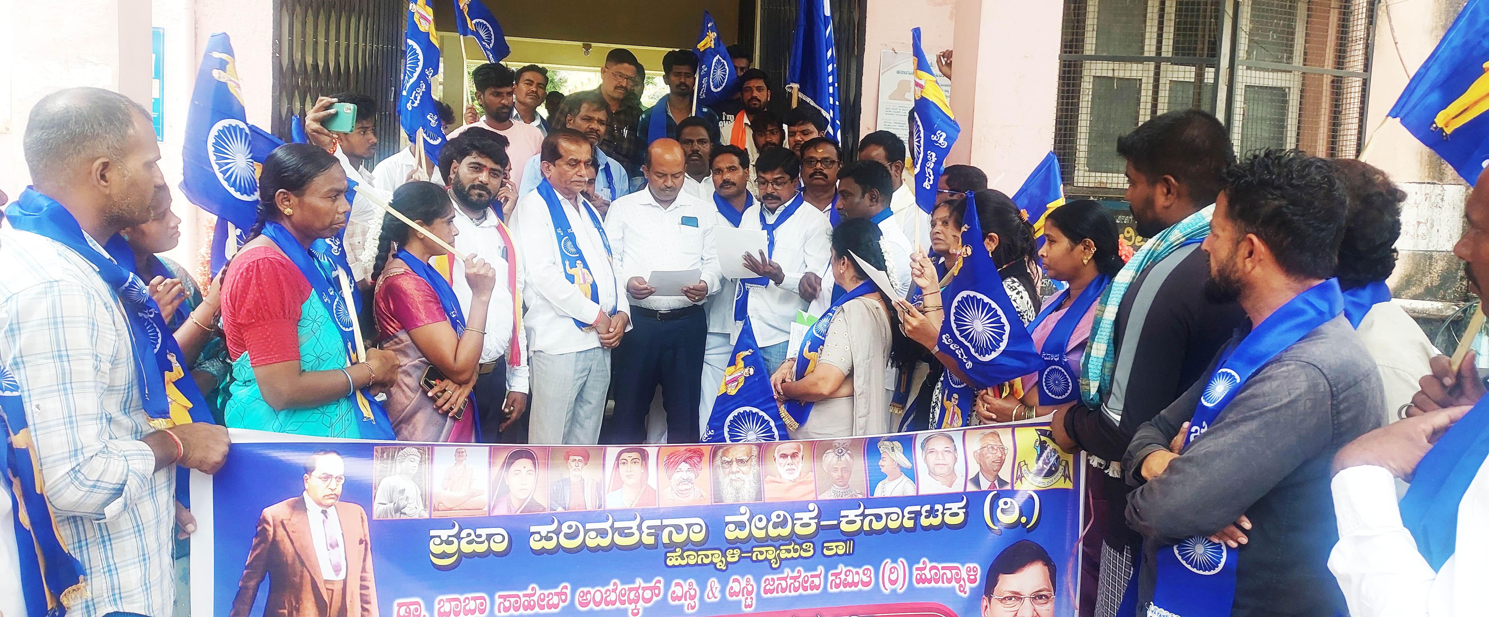 ದೇಶದ ಸರ್ವೋಚ್ಚ ನ್ಯಾಯಾಲಯದ ಮುಖ್ಯ ನ್ಯಾಯಮೂರ್ತಿ ಬಿ.ಆರ್. ಗವಾಯಿ ವರ ಮೇಲೆ ಶೂ ಎಸೆದ ಪ್ರಕರಣವನ್ನು ಅತ್ಯಂತ ಉಗ್ರವಾಗಿ ಖಂಡಿಸುತ್ತ, ಈ ಕೃತ್ಯವನ್ನು ಎಸಗಿದವರ ವಿರುದ್ಧ ದೇಶದ್ರೋಹದ ಪ್ರಕರಣ ದಾಖಲು ಮಾಡಿ ಅತ್ಯಂತ ಕಠಿಣ ಶಿಕ್ಷೆ ವಿಧಿಸಬೇಕು ಎಂದು ಪ್ರಜಾ ಪರಿವರ್ತನಾ ವೇದಿಕೆ ಹಾಗೂ ಡಾ.ಬಾಬಾ ಸಾಹೇಬ್ ಅಂಬೇಡ್ಕರ್ ಎಸ್.ಸಿ.ಎಸ್.ಟಿ. ಜನಸೇವಾ ಸಮಿತಿ ಅಧ್ಯಕ್ಷ ಎ.ಡಿ.ಈಶ್ವರಪ್ಪ ಒತ್ತಾಯಪಡಿಸಿದರು.ಉಭಯ ಸಂಘಟನೆಗಳ ವತಿಯಿಂದ ಮಂಗಳವಾರ ನೂರಾರು ಕಾರ್ಯಕರ್ತರು ಪಟ್ಡಣದ ಸಂಗೊಳ್ಳಿ ರಾಯಣ್ಣ ವೃತ್ತದಿಂದ ಮೆರವಣಿಗೆ ಮೂಲಕ ತಾಲೂಕು ಕಚೇರಿಗೆ ಅಗಮಿಸಿ ನಂತರ ತಹಸೀಲ್ದಾರ್ ಸಿ.ರಾಜೇಶ್ ಕುಮಾರ್ ಮೂಲಕ ದೇಶದ ಪ್ರಧಾನಿ ನರೇಂದ್ರ ಮೋದಿಯವರಿಗೆ ಮನವಿ ಪತ್ರ ಸಲ್ಲಿಸಿ ಮಾತನಾಡಿದರು.