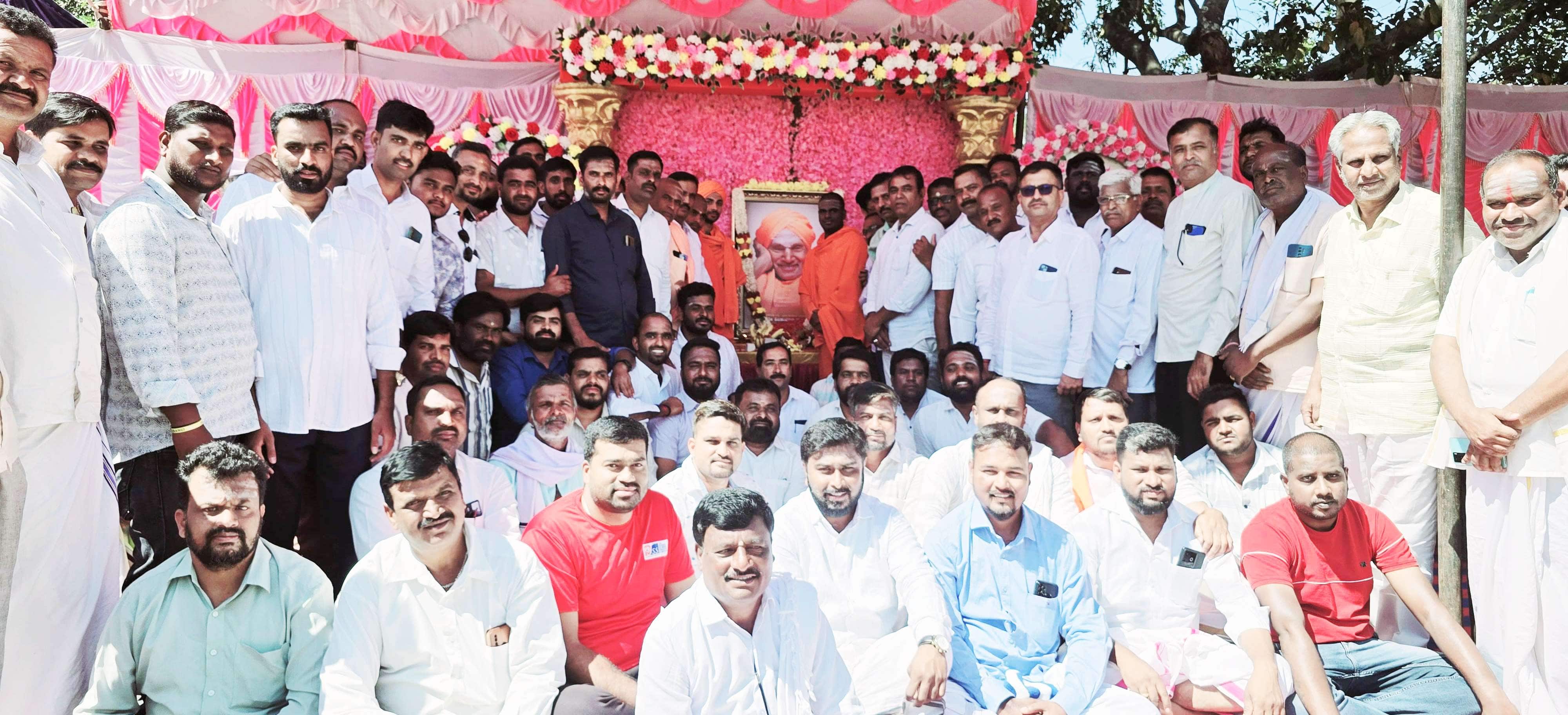 ಬಸವೇಶ್ವರ ವೃತ್ತದ ಬಳಿ ಸಿದ್ಧಗಂಗಾ ಡಾ.ಶಿವಕುಮಾರ ಮಹಾಸ್ವಾಮೀಜಿ ಅವರ ಭಾವಚಿತ್ರಕ್ಕೆ ಪೂಜೆ ಸಲ್ಲಿಸಿದ ವೀರಶೈವ ಲಿಂಗಾಯತ ಸಮಾಜದ ಮುಖಂಡರು, ನಂತರ ಪುಷ್ಪಾರ್ಚನೆ ನೆರವೇರಿಸಿ ಸಾವಿರಾರು ಮಂದಿಗೆ ಉಪಾಹಾರ ವಿತರಿಸಿದರು.