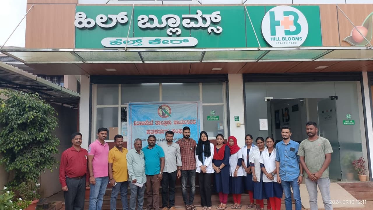 ವಿರಾಜಪೇಟೆ ತಾಲೂಕು ಕಾರ್ಯನಿರತ ಪತ್ರಕರ್ತರ ಸಂಘದಿಂದ ಹಿಲ್ ಬ್ಲೂಮ್ಸ್ ಹೆಲ್ತ್ ಕೇರ್ ಆಸ್ಪತ್ರೆಯ ಸಹಯೋಗದಲ್ಲಿ ವಿರಾಜಪೇಟೆ ತಾಲೂಕಿನ ಪತ್ರಕರ್ತರ ಸಂಘದ ಸದಸ್ಯರಿಗಾಗಿ ಆರೋಗ್ಯ ತಪಾಸಣಾ ಶಿಬಿರ ನಡೆಯಿತು.