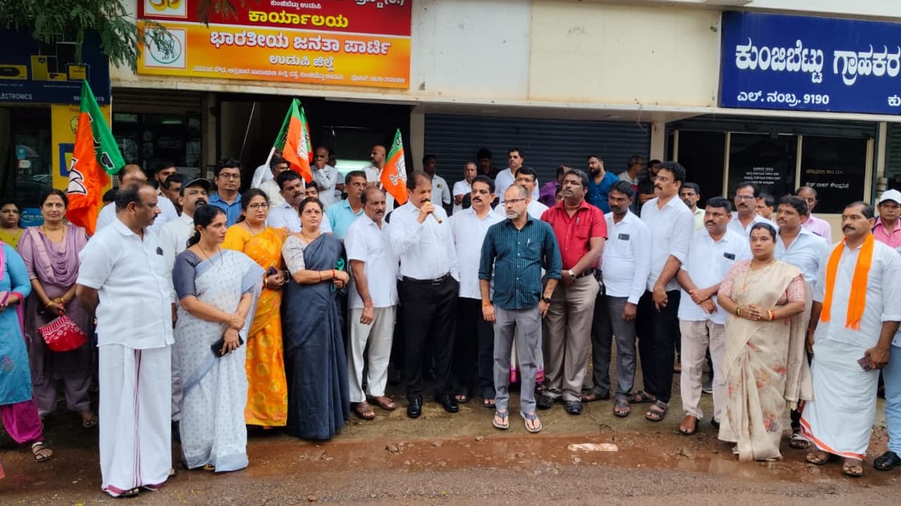 , ಜಿಲ್ಲಾ ಬಿಜೆಪಿ ಕಚೇರಿ ಮುಂಭಾಗ, ಸಿಎಂ ಸಿದ್ದರಾಮಯ್ಯ ಅವರ ರಾಜೀನಾಮೆ ನೀಡುವಂತೆ ಆಗ್ರಹಿಸಿ ಪ್ರತಿಭಟನೆ ನಡೆಯಿತು.