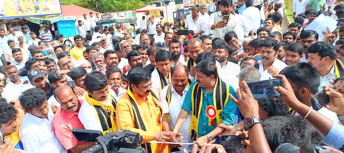 ಸ್ವಯಂ ವರ್ಚಸ್ಸಿನಿಂದ ಆಡಳಿತ ಚುಕ್ಕಾಣಿಸಿಎಂ ಆಗಿ ಸಿದ್ದರಾಮಯ್ಯ ಯಾವುದೇ ಲಕೋಟೆ ಮೂಲಕ ಆಗಲಿಲ್ಲ, ರಾಜ್ಯದ ೧೩೬ ಶಾಸಕರ ಸ್ವಯಂ ವರ್ಚಸ್ಸಿನಿಂದ ಬೆಂಬಲ ಪಡೆದು ಆಡಳಿತ ಚುಕ್ಕಾಣಿ ಹಿಡಿದಿದ್ದಾರೆ, ನಮ್ಮ ಬೆಳವಣಿಗೆಗೆ ಏಣಿಯಾಗಿ ಆಸರೆ ನೀಡಿರುವಂತ ಸಿದ್ದರಾಮಯ್ಯರ ಸಹಕಾರದಿಂದ ನಾವೆಲ್ಲಾ ಈ ಸ್ಥಾನ ಅಲಂಕರಿಸಲು ಸಾಧ್ಯವಾಗಿದೆ ಎಂದು ಹೇಳಿದರು. ರಾಜ್ಯದಲ್ಲಿ ಸುಮಾರು ೫೦ ಲಕ್ಷ ಮಂದಿ ಕುರುಬ ಸಮಾಜದವರು ಇದ್ದರೂ ಸಹ ಸಿದ್ದರಾಮಯ್ಯ ರಾಜ್ಯದ ೭.೫ ಕೋಟಿ ಜನತೆಯ ಪರವಾಗಿ ಕೆಲಸ ನಿರ್ವಹಿಸುವ ಮೂಲಕ ರಾಜಕಾರಣ ಹೇಗೆ ಮಾಡಬೇಕೆಂಬುವುದಕ್ಕೆ ದಾರಿ ದೀಪವಾಗಿದ್ದಾರೆ. ತುಳಿತಕ್ಕೆ ಒಳಗಾದವರ ಪರವಾಗಿ ಆಡಳಿತ ನಡೆಸುತ್ತಿರುವ ಸಿದ್ದರಾಮಯ್ಯ ಹೆಸರು ಇತಿಹಾಸದಲ್ಲಿ ದಾಖಲಾರ್ಹ ಎಂದು ತಿಳಿಸಿದರು.ಜಿಲ್ಲೆಯ ಅಭಿವೃದ್ದಿಗೆ ₹೧೨೪೦ ಕೋಟಿಸಿದ್ದರಾಮಯ್ಯರನ್ನು ಯಾವುದೇ ಸಂದರ್ಭದಲ್ಲೂ ಬದಲಿಸುವ ಸಾಧ್ಯತೆಗಳಿಲ್ಲ. ಪಕ್ಷದ ಹೈಕಮಾಂಡ್ಗೆ ಸಿದ್ದರಾಮಯ್ಯರ ಮೇಲೆ ಸಮರ್ಪಕ ಆಡಳಿತ ನೀಡುತ್ತಾರೆಂಬ ಧೃಡವಾದ ವಿಶ್ವಾಸವಿದೆ, ಕೋಲಾರ ಜಿಲ್ಲೆಯ ಅಭಿವೃದ್ದಿಗಾಗಿ ನಾನು ಉಸ್ತುವಾರಿ ಮಂತ್ರಿಯಾಗಿ ಕಳೆದ ಎರಡೂವರೆ ವರ್ಷದಲ್ಲಿ ಶಾಸಕ ಕೊತ್ತೂರು ಮಂಜುನಾಥ್ ಕೋಲಾರ ಜಿಲ್ಲೆಯ ಅಭಿವೃದ್ದಿಗೆ ಸುಮಾರು ೧೨೪೦ ಕೋಟಿ ರು.ಗಳನ್ನು ರಾಜ್ಯ ಸರ್ಕಾರದಿಂದ ನೀಡಲಾಗಿದೆ ಎಂದರು. ಕಾಲುವೆಗಳ ಅಭಿವೃದ್ದಿಗೆ ೧೦೦ ಕೋಟಿ ರೂ. ಮೆಡಿಕಲ್ ಕಾಲೇಜಿಗೆ ೬.೫ ಕೋಟಿ ರೂ, ನಗರದ ರಸ್ತೆ ಅಭಿವೃದ್ದಿಗೆ ೧೦೦ ಕೋಟಿ ರೂಗಳನ್ನು ಸಿಎಂ ಮಾದ್ಯಮ ಸಲಹೆಗಾರ ಕೆ.ವಿ.ಪ್ರಭಾಕರ್ ಹಾಗೂ ಕೊತ್ತೂರು ಮಂಜುನಾಥ್ ತಂದಿದ್ದಾರೆ. ೨೦೨೮ರಲ್ಲಿ ಕಾಂಗ್ರೆಸ್ ಸರ್ಕಾರ ಮತ್ತೆ ಆಡಳಿತ ಚುಕ್ಕಾಣಿ ಹಿಡಿಯುವುದು ಖಚಿತ ಎಂದು ಭವಿಷ್ಯ ನುಡಿದರು. ಸಮುದಾಯಕ್ಕೂ ಸಹಾಯದ ಹಸ್ತಕೋಲಾರ ಜಿಲ್ಲಾ ಅಭಿವೃದ್ದಿಯ ಜೂತೆಗೂ ಸಮುದಾಯದ ಅಭಿವೃದ್ದಿಗೂ ಕೈಜೋಡಿಸುವೆ. ವಿದ್ಯಾರ್ಥಿ ನಿಲಯದ ಕಟ್ಟಡದ ಕಾಮಗಾರಿಯು ಬಹುವರ್ಷದಿಂದ ನೆನಗುದಿಗೆ ಬಿದ್ದಿದ್ದು, ಇದಕ್ಕೆ ಒಂದೂವರೆ ಕೋಟಿ ರೂ.ಗಳನ್ನು ಬಿಡುಗಡೆ ಮಾಡಿ ಇದರ ಉಸ್ತುವಾರಿ ಶ್ರೀ ಕನಕ ಸೇವಾ ಮಂಡಳಿಗೆ ವಹಿಸಲಾಗುವುದು. ಇದಕ್ಕೆ ನನ್ನ ಅನುದಾನದಿಂದ ೧೦ ಲಕ್ಷ ರು, ಶಾಸಕ ಕೊತ್ತೂರು ಮಂಜುನಾಥ್ ಅವರ ಅನುದಾನದಿಂದ ೫ ಲಕ್ಷ ರು.ಗಳನ್ನು, ವರ್ತೂರು ಪ್ರಕಾಶ್ ೫ ಲಕ್ಷ ರೂ ಸೇರಿಂದ ಒಟ್ಟು ೨೦ ಲಕ್ಷ ರೂ ನೀಡಲಾಗುವುದು ಹಾಗೂ ಇನ್ನು ೬ ತಿಂಗಳಲ್ಲೀ ಪೂರ್ಣಗೊಳಿಸುವ ನಿರೀಕ್ಷೆ ಹೊಂದಿರುವುದಾಗಿ ತಿಳಿಸಿದರು. ಸಿಎಂ ಮಾಧ್ಯಮ ಸಲಹೆಗಾರ ಕೆ.ವಿ.ಪ್ರಬಾಕರ್, ಶಾಸಕ ಕೊತ್ತೂರು ಮಂಜುನಾಥ್, ಮಾಜಿ ಸಚಿವ ವರ್ತೂರು ಪ್ರಕಾಶ್, ಸಂಸದ ಎಂ.ಮಲ್ಲೇಶ್ ಬಾಬು, ಎಂಎಲ್ಸಿಗಳಾದ ಎಂ.ಎಲ್.ಅನಿಲ್ ಕುಮಾರ್, ಇಂಚರ ಗೋವಿಂದರಾಜು, ನಗರಸಭೆ ಅಧ್ಯಕ್ಷೆ ಲಕ್ಷ್ಮೀ ದೇವಮ್ಮ, ಜಿಲ್ಲಾ ಗ್ಯಾರೆಂಟಿ ಅನುಷ್ಟಾನ ಸಮಿತಿ ಅಧ್ಯಕ್ಷ ವೈ.ಶಿವಕುಮಾರ್, ಕುಡಾ ಅಧ್ಯಕ್ಷ ಮಹಮ್ಮದ್ ಹನೀಫ್, ಜೆಡಿಎಸ್ ಮುಖಂಡ ಸಿ.ಎಂ.ಆರ್.ಶ್ರೀನಾಥ್ ಮತ್ತಿತರರು ಇದ್ದರು.;Resize=(128,128))