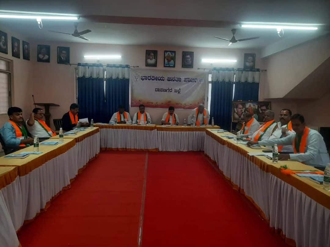 ದಾವಣಗೆರೆ ಬಿಜೆಪಿ ಕಚೇರಿಯಲ್ಲಿ ಜಿಲ್ಲಾ ವೀಕ್ಷಕರಾದ ಆರಗ ಜ್ಞಾನೇಂದ್ರ, ಪ್ರೀತಂ ಗೌಡ ನೇತೃತ್ವದಲ್ಲಿ ಜಿಲ್ಲಾ ಕೋರ್ ಕಮಿಟಿ ಸಭೆ ನಡೆದಿದ್ದು, ಎಸ್.ಎ.ರವೀಂದ್ರನಾಥ- ಎಂ.ಪಿ.ರೇಣುಕಾಚಾರ್ಯ ಗುಂಪು ಭಾಗಿಯಾದರೆ, ಜಿ.ಎಂ.ಸಿದ್ದೇಶ್ವರ- ಬಿ.ಪಿ.ಹರೀಶ ಗುಂಪು ಸಭೆಯಿಂದ ದೂರವೇ ಉಳಿಯಿತು.;Resize=(128,128))