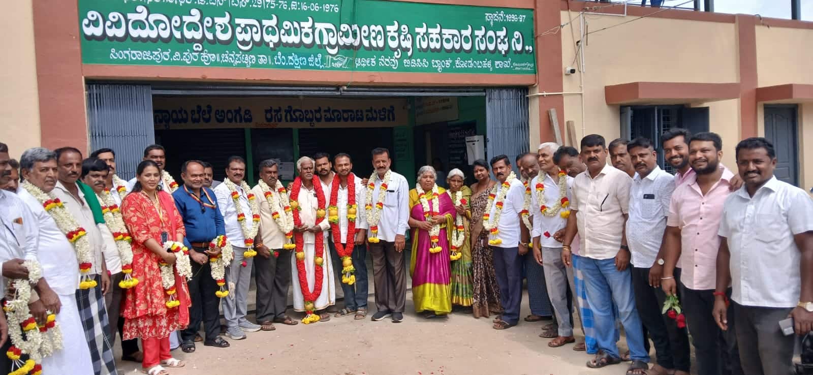 ಚನ್ನಪಟ್ಟಣ ತಾಲೂಕಿನ ಸಿಂಗರಾಜಪುರ ವಿವಿಧೋದ್ದೇಶ ಪ್ರಾಥಮಿಕ ಕೃಷಿ ಗ್ರಾಮೀಣ ಸಹಕಾರ ಸಂಘದ ಆಡಳಿತ ಮಂಡಳಿಯ ನೂತನ ಅಧ್ಯಕ್ಷರಾಗಿ ಆಯ್ಕೆಯಾದ ಹನಿಯೂರು ಎಚ್.ಎಂ.ಶಿವರಾಮೇಗೌಡ ಹಾಗೂ ಉಪಾಧ್ಯಕ್ಷರಾಗಿ ಸಿಂಗರಾಜಿಪುರದ ಎಸ್. ಶಿವಕುಮಾರ್ ಅವರನ್ನು ಅಭಿನಂದಿಸಲಾಯಿತು.