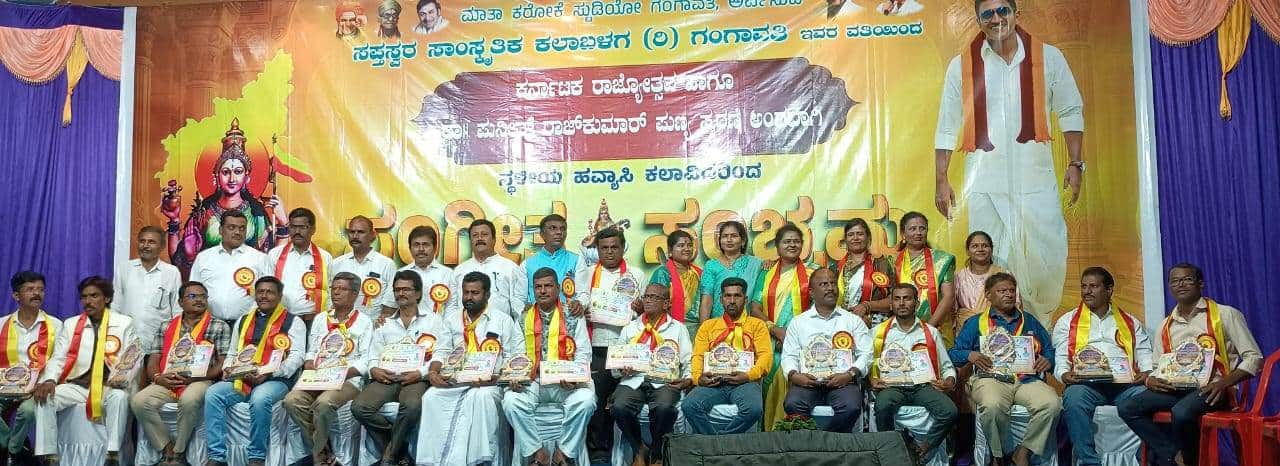 ಗಂಗಾವತಿ: ನಗರದ ಕೊಟ್ಟೂರು ಬಸವೇಶ್ವರ ಸಭಾಂಗಣದಲ್ಲಿ ಮಾತಾ ಕರೋಕೆ ಸ್ಟುಡಿಯೋ ಹಾಗೂ ಸಪ್ತಸ್ವರ ಸಾಂಸ್ಕೃತಿಕ ಕಲಾ ಬಳಗದ ಗಾಯಕರಿಂದ ಕರ್ನಾಟಕ ರಾಜ್ಯೋತ್ಸವ ಹಾಗೂ ಪುನೀತ್ ರಾಜಕುಮಾರ್ ಸ್ಮರಣೋತ್ಸವ ಕಾರ್ಯಕ್ರಮ ಅದ್ಧೂರಿಯಾಗಿ ಜರುಗಿತು.