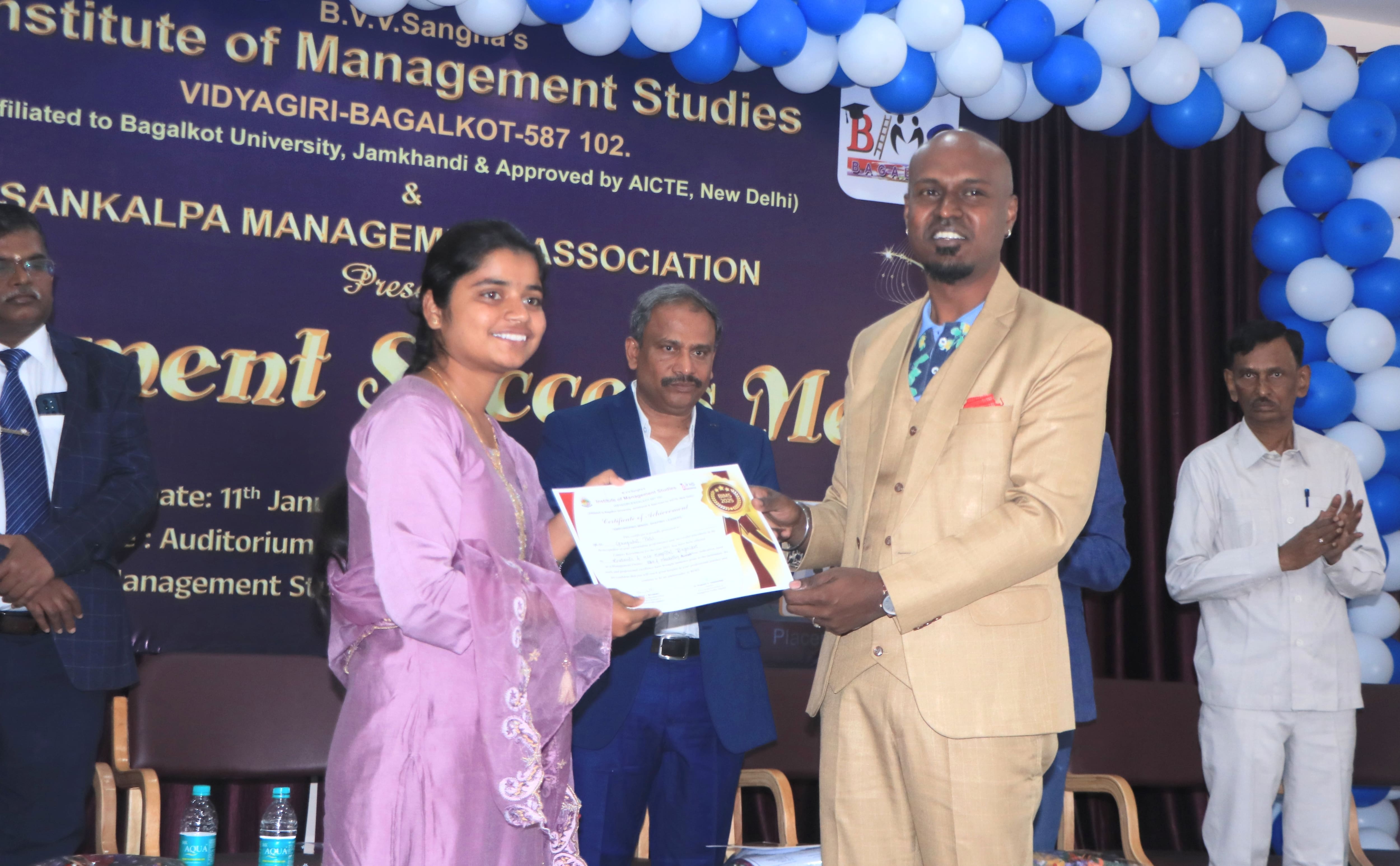 ಔದ್ಯೋಗಿಕ ಕ್ಷೇತ್ರದಲ್ಲಿ ಸಂಶೋಧನಾತ್ಮಕ ತಂತ್ರಜ್ಞಾನದ ಕೌಶಲ್ಯದ ಜೊತೆಗೆ ಉತ್ತಮ ವ್ಯಕ್ತಿತ್ವವನ್ನು ಬೆಳಸಿಕೊಳ್ಳಬೇಕು ಎಂದು ಡೇಟಾಲಾಜಿಕ್ಸ್ ಇಂಡಿಯಾದ ಮಾನವ ಸಂಪನ್ಮೂಲ ಅಭಿವೃದ್ದಿಯ ಅಧಿಕಾರಿಗಳಾದ ಶ್ರೀನಿವಾಸನ್ ವರದರಾಜನ ಹೇಳಿದರು.ನಗರದ ಬಿ.ವಿ.ವಿ ಸಂಘದ ಇನ್ಸ್ಟಿಟ್ಯೂಟ್ ಆಫ್ ಮ್ಯಾನೇಜ್ಮೆಂಟ್ ಸ್ಟಡೀಸ್ (ಬಿಮ್ಸ್) ಮಹಾವಿದ್ಯಾಲಯದ ಸಭಾಭವನದಲ್ಲಿ ಜರುಗಿದ ಎಂಬಿಎ ವಿದ್ಯಾರ್ಥಿಗಳ ಪ್ಲೇಸ್ಮೆಂಟ್ ಸಕ್ಸಸ್ಮೀಟ್ - 2025 ಕಾರ್ಯಕ್ರಮವನ್ನು ಉದ್ಘಾಟಿಸಿ ವಿದ್ಯಾರ್ಥಿಗಳಿಗೆ ಪ್ರಮಾಣ ಪತ್ರವಿತರಿಸಿ ಮಾತನಾಡಿದರು.