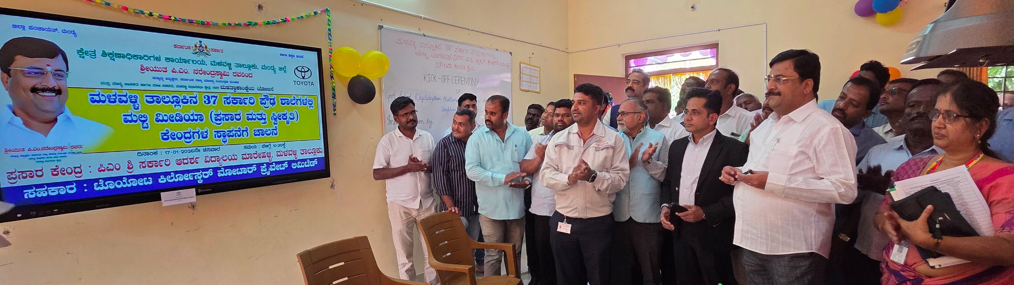 ಟೊಯೋಟ ಕಿರ್ಲೋಸ್ಕರ್ ಮೋಟರ್ ಸಂಸ್ಥೆಯಿಂದ ತಾಲೂಕಿನ 38 ಸರ್ಕಾರಿ ಪ್ರೌಢಶಾಲೆಗಳಿಗೆ ಸಾಮಾಜಿಕ ಹೊಣೆಗಾರಿಕೆಯಡಿಯಲ್ಲಿ ಮಲ್ಟಿಮೀಡಿಯಾ ಹಾಗೂ ಎಲ್ಲಾ ಸರ್ಕಾರಿ ಶಾಲೆಗಳಿಗೆ ಸ್ಮಾರ್ಟ್ ಕ್ಲಾಸ್ ಸ್ಥಾಪನೆಗೆ ಮುಂದಾಗಿದೆ. ಶಿಕ್ಷಣದಿಂದ ಮಾತ್ರ ಬದುಕನ್ನು ಬದಲಾಯಿಸಲು ಸಾಧ್ಯ ಎನ್ನುವುದನ್ನು ಅರ್ಥೈಸಿಕೊಂಡು ಸರ್ಕಾರಿ ಶಾಲೆ ಮಕ್ಕಳಿಗೆ ಗುಣಾತ್ಮಕ ಶಿಕ್ಷಣ ಕೊಡಿಸಲು ಶ್ರಮ ವಹಿಸಿ ಸುಮಾರು 25 ಕೋಟಿ ಹೆಚ್ಚು ಅನುದಾನವನ್ನು ಸರ್ಕಾರಿ ಶಾಲೆಗಳ ಅಭಿವೃದ್ಧಿಗೆ ವಿನಿಯೋಗಿಸಲಾಗುತ್ತಿದೆ ಎಂದು ವಿವರಿಸಿದರು.ನಾವೆಲ್ಲರೂ ಸಮಾನರು ಎನ್ನುವುದನ್ನು ತೋರಿಸಿರುವ ಡಾ.ಬಿ.ಆರ್.ಅಂಬೇಡ್ಕರ್ ಅವರ ಆಶಯದಂತೆ ತಾಲೂಕಿನಲ್ಲಿ ಖಾಸಗಿ ಶಾಲೆಗಳ ಸಮಾನಾಗಿ ಗುಣಾತ್ಮಕ ಶಿಕ್ಷಣಕ್ಕೆ ಒತ್ತು ನೀಡುತ್ತಿರುವುದರಿಂದ ಪೋಷರು ಖಾಸಗಿ ಶಾಲೆಗಳ ವ್ಯಾಮೋಹ ಬಿಟ್ಟು, ತಮ್ಮ ಮಕ್ಕಳನ್ನು ಸರ್ಕಾರಿ ಶಾಲೆಗೆ ಸೇರಿಸಬೇಕೆಂದು ಕೋರಿದರು.