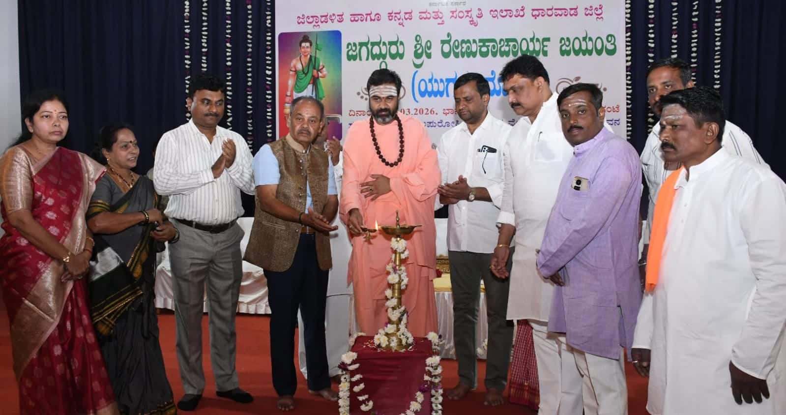 ಕರ್ನಾಟಕ ಜಂಗಮ ಯುವ ವೇದಿಕೆ ಅಧ್ಯಕ್ಷ ಮಂಜುನಾಥ ಹಿರೇಮಠ, ಕಾರ್ಯದರ್ಶಿ ಬಸವರಾಜ ಕುರಹಟ್ಟಿಮಠ, ಮಂಜುನಾಥ ಹೂಗಾರ, ಶಶಿಕಲಾ ಶಾಸ್ತ್ರಿಮಠ, ರೇಣುಕಾ ಲಿಂಬಣ್ಣದೇವರಮಠ ವೇದಿಕೆ ಮೇಲಿದ್ದರು. ಕುಮಾರ ಬೆಕ್ಕೇರಿ ಸ್ವಾಗತಿಸಿದರು. ಜಗದ್ಗುರು ರೇಣುಕಾಚಾರ್ಯರು ಬೋಧನೆ ಮಾಡಿರುವ ಸಿದ್ಧಾಂತ ಕೇವಲ ಒಂದು ಜಾತಿ-ಜನಾಂಗಕ್ಕೆ ಸೀಮಿತವಲ್ಲ. ಇಡೀ ಮನುಕುಲ ಉತ್ತಮ ಹಾದಿಯಲ್ಲಿ ನಡೆಯುವ ಶಿವ ಸಿದ್ಧಾಂತ ಬೋಧಿಸಿದ್ದಾರೆ. ಈ ಹಿನ್ನೆಲೆಯಲ್ಲಿ ಸಮಾಜ ಅವರು ಬೋಧಿಸಿದ ಚಿಂತನೆಗಳನ್ನು ಜೀವನದಲ್ಲಿ ಅಳವಡಿಸಿಕೊಂಡು ಉತ್ತಮ ಜೀವನ ಸಾಗಿಸಿ.ಶಾಂತಲಿಂಗ ಶಿವಾಚಾರ್ಯರು, ಅಮ್ಮಿನಬಾವಿ