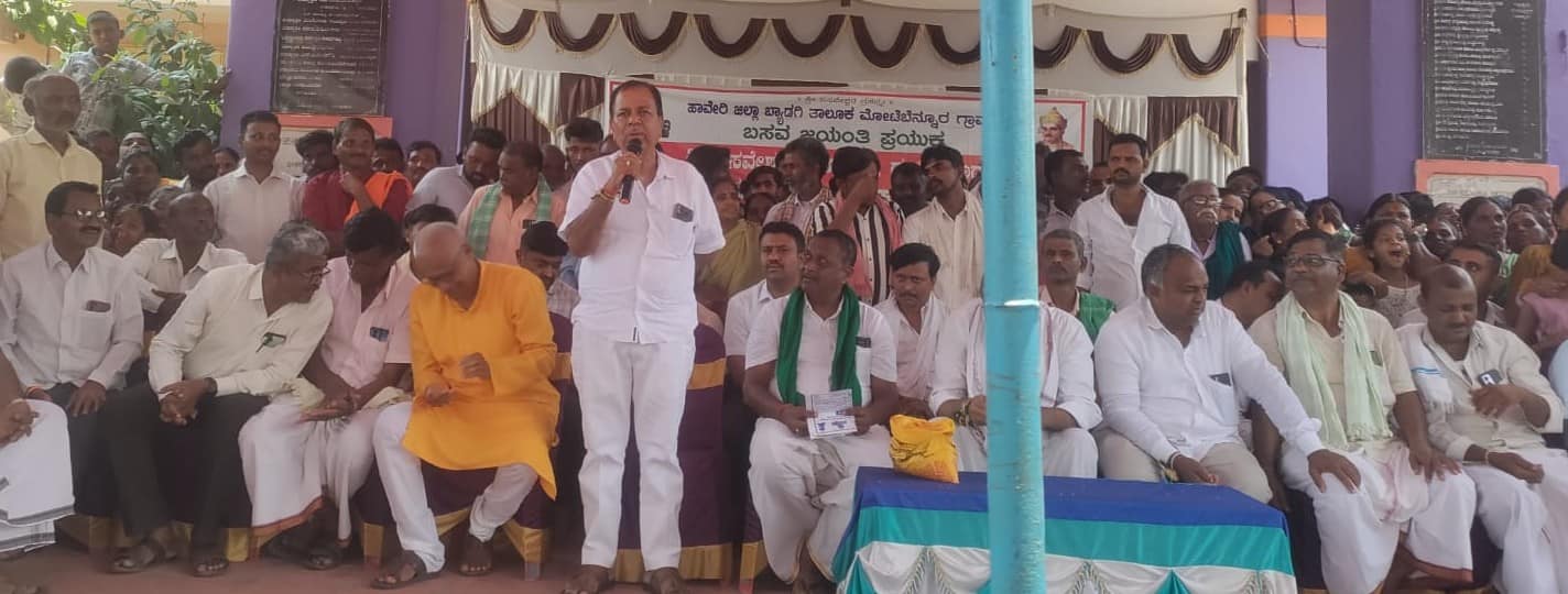 ತಾಲೂಕಿನ ಮೋಟೆಬೆನ್ನೂರಿನ ಗ್ರಾಮದಲ್ಲಿ ಬಸವ ಜಯಂತಿ ಪ್ರಯುಕ್ತ ಬಸವೇಶ್ವರ ಜಾತ್ರಾ ಮಹೋತ್ಸವದ ಅಂಗವಾಗಿ ಹಮ್ಮಿಕೊಂಡಿದ್ದ ಸಾಮೂಹಿಕ ವಿವಾಹ ಕಾರ್ಯಕ್ರಮವನ್ನುದ್ದೇಶಿಸಿ ಅವರು ಮಾತನಾಡಿದರು. ಧರ್ಮದ ಮೊದಲ ತಿರುಳೇ ಮಾನವೀಯತೆ, ಇವುಗಳ ನಡುವೆ ಒಂದಿಷ್ಟು ಸಂಪ್ರದಾಯ, ನಂಬಿಕೆ, ಆಚರಣೆ ಸೇರಿಕೊಂಡು ಒಟ್ಟಾರೆ ಧರ್ಮದ ಚೌಕಟ್ಟನ್ನು ನಿರ್ಧರಿಸುತ್ತವೆ. ಆದರೆ ಇತ್ತೀಚೆಗೆ ಸಾಮಾಜಿಕ ವ್ಯವಸ್ಥೆಯನ್ನೇ ತಮ್ಮ ಹಿಡಿತದಲ್ಲಿಟ್ಟುಕೊಳ್ಳುವ ಪ್ರಯತ್ನಿಕ್ಕಿಳಿದಿದ್ದು ತಮ್ಮ ಧರ್ಮವನ್ನು ಇನ್ನೊಬ್ಬರ ಮೇಲೆ ಹೇರಲ್ಪಡಲಾಗುತ್ತಿರುವುದು ಖಂಡನೀಯ ಎಂದರು.ಧರ್ಮ ಬಿಟ್ಟು ನಡೆಯದಿರಿ: ಜಿ.ಸಿ. ಹಾವೇರಿಮಠ ಮಾತನಾಡಿ, ಕೃಷಿ, ವ್ಯಾಪಾರ, ಸರ್ಕಾರಿ ಸೇವೆ, ರಾಜಕಾರಣ ಎಲ್ಲದರಲ್ಲಿಯೂ ಧರ್ಮ ಅಡಗಿದೆ, ಬಾಹ್ಯ ಜಗತ್ತಿಗೆ ನಾವು ಎಷ್ಟೇ ಸಿರಿವಂತರಾದರೂ ಧರ್ಮವನ್ನು ಬಿಟ್ಟು ನಡೆದುಕೊಂಡಲ್ಲಿ ಸಮಾಜದ ಎದುರಿಗೆ ನಮ್ಮಂತಹ ಸಣ್ಣವರು ಇನ್ನೊಬ್ಬರಿಲ್ಲ. ದೇವರು ನಮಗೆ ಸಿರಿ-ಸಂಪದ, ಸ್ಥಾನಮಾನ ಯಾವುದಕ್ಕೂ ಕೊರತೆ ಇಲ್ಲದಂತೆ ನೋಡಿಕೊಂಡಿದ್ದಾನೆ ಹೀಗಿದ್ದರೂ ಸಹ ಇನ್ನೊಬ್ಬರ ಏಳಿಗೆಯನ್ನು ಸಹಿಸಿಕೊಳ್ಳದ ನಾವುಗಳು ಶಾಂತಿ, ಸಮಾಧಾನ ಕಳೆದುಕೊಂಡಿದ್ದೇವೆ ಎಂದರು.