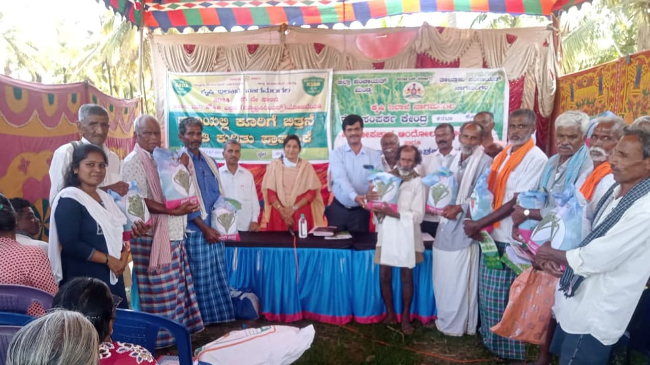 ಇಲಾಖೆ ಯೋಜನೆಗಳಾದ ಕೃಷಿ ಭಾಗ್ಯ, ಬೆಳೆ ವಿಮೆ ಹಾಗೂ 2024-25ನೇ ಸಾಲಿನ ಕೃಷಿ ಪ್ರಶಸ್ತಿ ಕುರಿತು ಮಾಹಿತಿ ನೀಡಿದ ಬಳಿಕ ರೈತರ ಜಮೀನಿನಲ್ಲಿ ಪ್ರಾಯೋಗಿಕವಾಗಿ ಕೂರಿಗೆ ಬಿತ್ತನೆ ಮಾಡಿ ತೋರಿಸಲಾಯಿತು. ಬೀಜೋಪಚಾರದ ಪ್ರಾಮುಖ್ಯತೆ, ಬೀಜ ಹದಗೊಳಿಸುವಿಕೆ ಕುರಿತು ನಿವೃತ್ತ ಕೃಷಿ ಅಧಿಕಾರಿ ಮಂಜುನಾಥ ವಿ.ಪಟಗಾರ್ ಮಾಹಿತಿ ನೀಡಿ, ಬಿತ್ತನೆಗೂ ಮುನ್ನ ಬೀಜೋಪಚಾರ ಮಾಡುವ ಕುರಿತು ರೈತರಿಗೆ ಪ್ರಾತ್ಯಕ್ಷಿತೆ ನೀಡಲಾಯಿತು.ಕಾರ್ಯಕ್ರಮದಲ್ಲಿ ಕೃಷಿ ಅಧಿಕಾರಿ ರಾಜೇಶ್, ತಾಂತ್ರಿಕ ಅಧಿಕಾರಿ ಯುವರಾಜ್, ತಾಂತ್ರಿಕ ವ್ಯವಸ್ಥಾಪಕಿ ನಂದಿನಿ, ಎಂಪಿಸಿಎಸ್ಮಾಜಿ ಅಧ್ಯಕ್ಷ ಬೆಟ್ಟಸ್ವಾಮಿಗೌಡ, ಮುಖಂಡ ರಾಜು, ಇಲಾಖೆಯ ಆತ್ಮ ಸಿಬ್ಬಂದಿ ಹಾಗೂ ಗ್ರಾಮದ ಮುಖ್ಯಸ್ಥರು ಉಪಸ್ಥಿತರಿದ್ದರು.