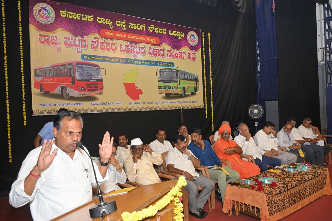 ಸಾರಿಗೆ ನೌಕರರ ನಾಲ್ಕು ನಿಗಮಗಳ ಸಂಘಟನೆಯು ಒಗ್ಗಟ್ಟಿನಿಂದ ಹೋರಾಡಿದಾಗ ಮಾತ್ರ ಬೇಡಿಕೆ ಈಡೇರಿಸಿಕೊಳ್ಳಲು ಸಾಧ್ಯ ಎಂದು ವಾಯವ್ಯ ಕರ್ನಾಟಕ ರಸ್ತೆ ಸಾರಿಗೆ ಸಂಸ್ಥೆ ನೌಕರರ ಒಕ್ಕೂಟದ ಗೌರವಾಧ್ಯಕ್ಷ ಪಿ.ಎಚ್. ನೀರಲಕೇರಿ ಹೇಳಿದರು.ಇಲ್ಲಿಯ ಪಾಟೀಲ್ ಪುಟ್ಟಪ್ಪ ಸಭಾಭವನದಲ್ಲಿ ನಡೆದ ರಾಜ್ಯ ಸಾರಿಗೆ ನೌಕರರ ಒಕ್ಕೂಟದ ವಿಚಾರ ಸಂಕಿರಣ ಸಭೆಯಲ್ಲಿ ಮಾತನಾಡಿದ ಅವರು, ಸಾರಿಗೆ ನೌಕರರಿಗೆ ಬರಬೇಕಾದ 38 ತಿಂಗಳ ಹಿಂಬಾಕಿಯನ್ನು ನಿವೃತ್ತರಿಗೂ ಸಹಿತ ಕೂಡಲೇ ಬಿಡುಗಡೆ ಮಾಡಬೇಕು, ಈಗಾಗಲೇ ಮುಖ್ಯಮಂತ್ರಿ ಹೇಳಿದಂತೆ 14 ತಿಂಗಳ ಹಿಂಬಾಕಿಯನ್ನು ದೀಪಾವಳಿ ಮುನ್ನವೇ ಬಿಡುಗಡೆ ಮಾಡಲು ಆಗ್ರಹಿಸಿದರು. ರಾಜ್ಯದ ನಾಲ್ಕು ನಿಗಮಗಳ ಬೇಡಿಕೆ ಈಡೇರಿಸಲು ಎಲ್ಲ ಸಂಘಟನೆಗಳು ಒಗ್ಗಟ್ಟಾಗಿ ಸರ್ಕಾರಕ್ಕೆ ಸಲ್ಲಿಸಿದಲ್ಲಿ ನ್ಯಾಯ ಸಿಗಲು ಸಾಧ್ಯ ಎಂದರು.