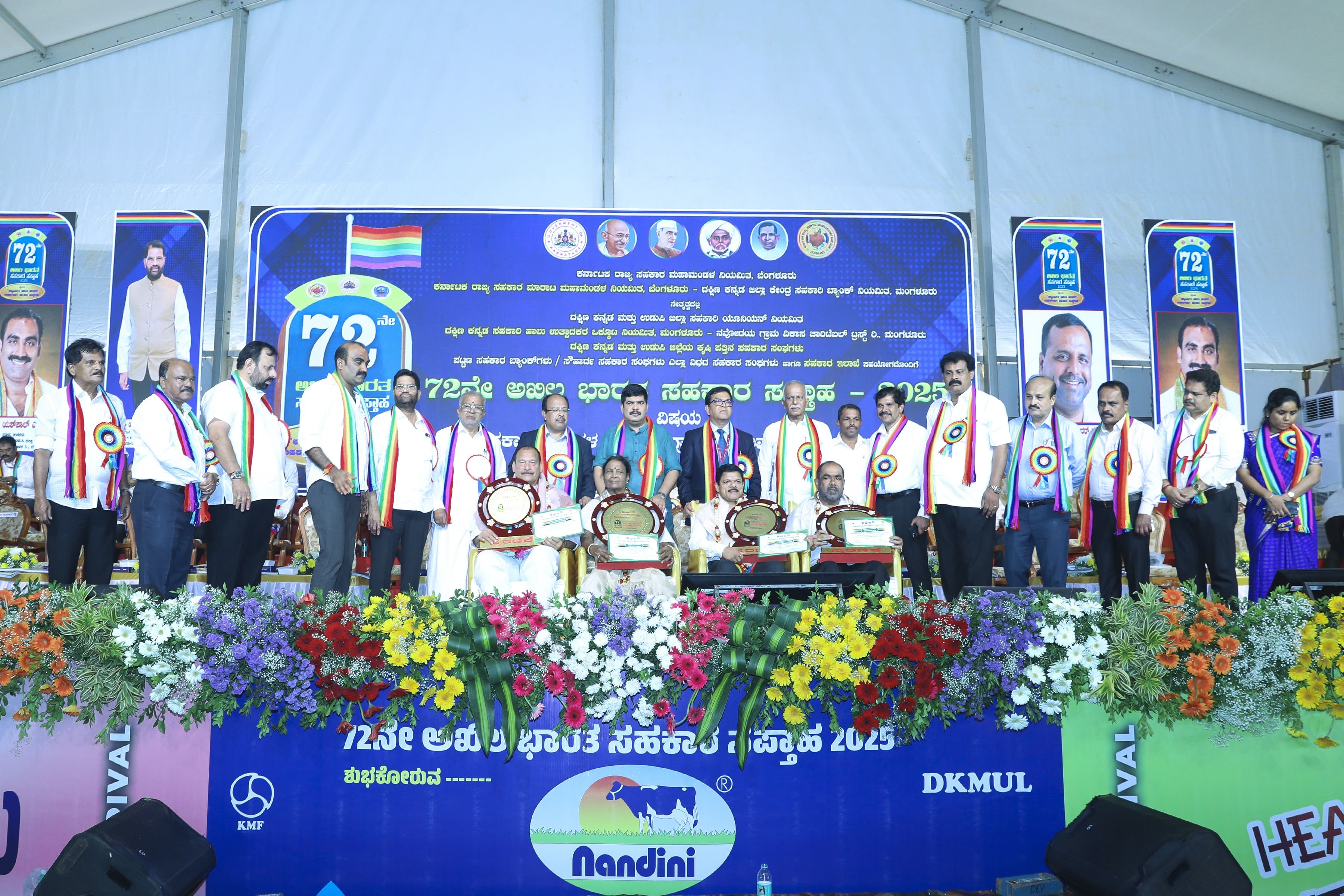 ಮಂಗಳೂರು: ನಗರದ ಕರಾವಳಿ ಉತ್ಸವ ಕ್ರೀಡಾಂಗಣದಲ್ಲಿ ನಡೆದ 76ನೇ ಅಖಿಲ ಭಾರತ ಸಹಕಾರಿ ಸಪ್ತಾಹದ ಸಂದರ್ಭ ರಾಜ್ಯ ಸಹಕಾರ ಮಾರಾಟ ಮಹಾಮಂಡಳ ಮತ್ತು ದಕ್ಷಿಣ ಕನ್ನಡ ಜಿಲ್ಲಾ ಕೇಂದ್ರ ಸಹಕಾರ ಬ್ಯಾಂಕ್ ಅಧ್ಯಕ್ಷ ಡಾ.ಎಂ.ಎನ್. ರಾಜೇಂದ್ರ ಕುಮಾರ್ ಅವರಿಂದ ‘ವಜ್ರಮಹೋತ್ಸವ ಪೂರೈಸಿದ ಸಹಕಾರಿ ಸಂಘ ವಿಶೇಷ ಪ್ರಶಸ್ತಿಯನ್ನು ಎಸ್.ಕೆ. ಗೋಲ್ಡ್ ಸ್ಮಿತ್ಸ್ ಇಂಡಸ್ಟ್ರಿಯಲ್ ಕೋ- ಆಪರೇಟಿವ್ ಸೊಸೈಟಿ ಅಧ್ಯಕ್ಷ ಪಿ. ಉಪೇಂದ್ರ ಆಚಾರ್ಯ ಪಡೆದುಕೊಂಡರು.ರಾಜ್ಯ ಸಹಕಾರ ಮಹಾಮಂಡಳ ಅಧ್ಯಕ್ಷ ಜಿ.ಟಿ. ದೇವೇಗೌಡ, ವಿಧಾನ ಪರಿಷತ್ ಶಾಸಕರಾದ ಮಂಜುನಾಥ ಭಂಡಾರಿ, ಐವನ್ ಡಿಸೋಜ, ಕಿಶೋರ್ ಕುಮಾರ್ ಬೊಟ್ಯಾಡಿ, ನಬಾರ್ಡ್ ಬೆಂಗಳೂರು ಮುಖ್ಯ ಪ್ರಬಂಧಕ ಡಾ. ಸುರೇಂದ್ರ ಬಾಬು, ರಾಜ್ಯ ಸಹಕಾರ ಮಹಾಮಂಡಳ ನಿ. ವ್ಯವಸ್ಥಾಪಕ ನಿರ್ದೇಶಕ ಕೆ.ಎಸ್. ನವೀನ್, ಸಹಕಾರ ಸಂಘಗಳ ನಿಬಂಧಕ ಟಿ.ಎಚ್.ಎಂ. ಕುಮಾರ್, ಸಹಕಾರ ಸಂಘಗಳ ಜಂಟಿ ನಿಬಂಧಕ ಪ್ರಸಾದ್ ರೆಡ್ಡಿ ಪಿ., ಸಹಕಾರ ಸಂಘಗಳ ಉಪನಿಬಂಧಕ (ದ.ಕ. ಜಿಲ್ಲೆ) ಎಚ್.ಎನ್. ರಮೇಶ್, ಉಡುಪಿ ಜಿಲ್ಲಾ ಸಹಕಾರ ಸಂಘಗಳ ಉಪನಿಬಂಧಕಿ ಲಾವಣ್ಯ ಕೆ.ಆರ್., ಕೆ.ಎಂ.ಎಫ್. ಅಧ್ಯಕ್ಷ ರವಿರಾಜ್ ಹೆಗ್ಡೆ, ಮಂಗಳೂರು ನಗರಾಭಿವೃದ್ಧಿ ಪ್ರಾಧಿಕಾರ ಅಧ್ಯಕ್ಷ ಸದಾಶಿವ ಉಳ್ಳಾಲ್, ಟಿಎಪಿಸಿಎಂಎಸ್ ಅಧ್ಯಕ್ಷ ಮೋನಪ್ಪ ಶೆಟ್ಟಿ ಎಕ್ಕಾರು, ದ.ಕ. ಜಿಲ್ಲಾ ಸಹಕಾರಿ ಯೂನಿಯನ್ ಅಧ್ಯಕ್ಷ ಹಾಗೂ ದ.ಕ.ಜಿಲ್ಲಾ ಕೇಂದ್ರ ಸಹಕಾರಿ ಬ್ಯಾಂಕ್ ನಿ. ನಿರ್ದೇಶಕರಾದ ಶಶಿಕುಮಾರ್ ರೈ ಬಾಲ್ಯೊಟ್ಟು, ದೇವಿಪ್ರಸಾದ್ ಶೆಟ್ಟಿ ಬೆಳಪು, ಶಾಸಕ ಯಶ್ಪಾಲ್ ಎ. ಸುವರ್ಣ, ಉಡುಪಿ ಜಿಲ್ಲಾ ಸಹಕಾರಿ ಯೂನಿಯನ್ ಅಧ್ಯಕ್ಷ ಬಿ. ಜಯಕರ ಶೆಟ್ಟಿ ಇಂದ್ರಾಳಿ ಇದ್ದರು.