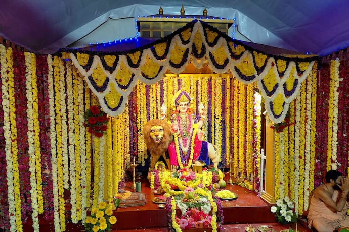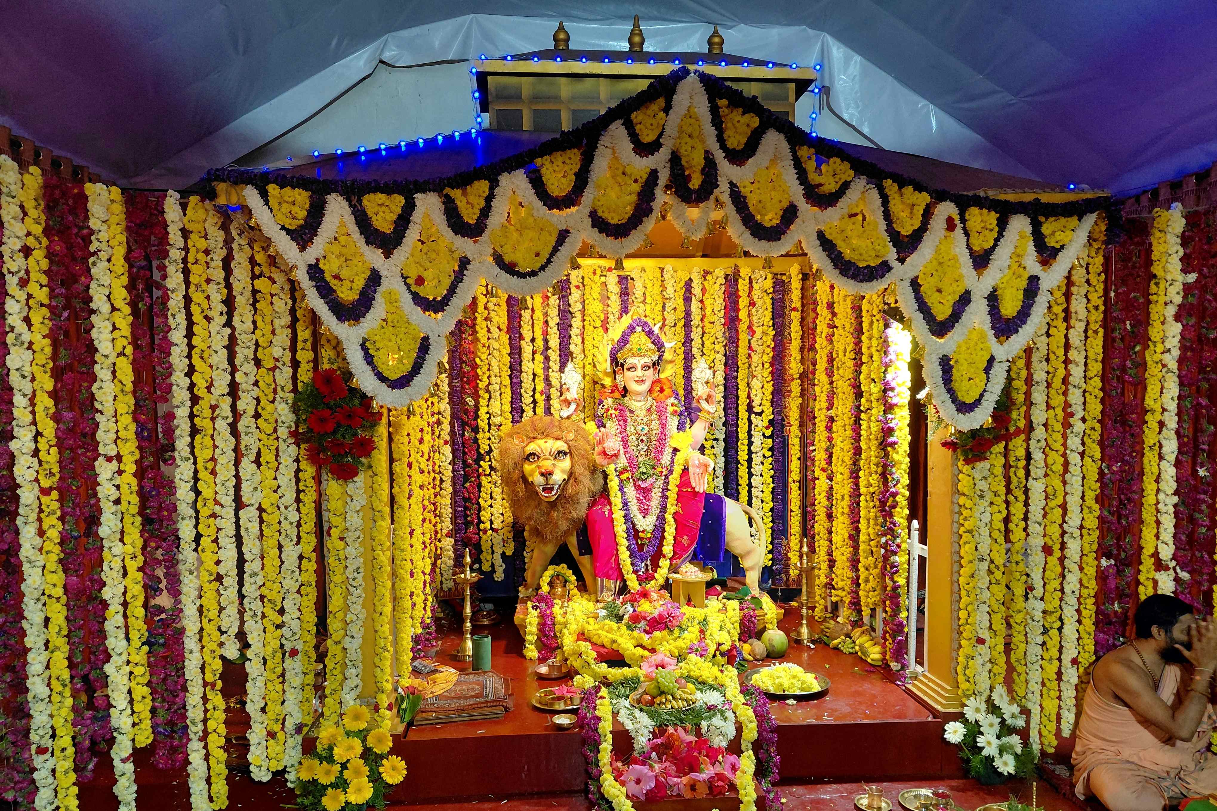 ಬಾಳೆಹೊನ್ನೂರಿನ ದುರ್ಗಾದೇವಿ ನವರಾತ್ರಿ ಮಹೋತ್ಸವದಲ್ಲಿ ದುರ್ಗಾದೇವಿಗೆ ವಿಶೇಷ ಹೂವಿನ ಅಲಂಕಾರ ಮಾಡಲಾಗಿತ್ತು.