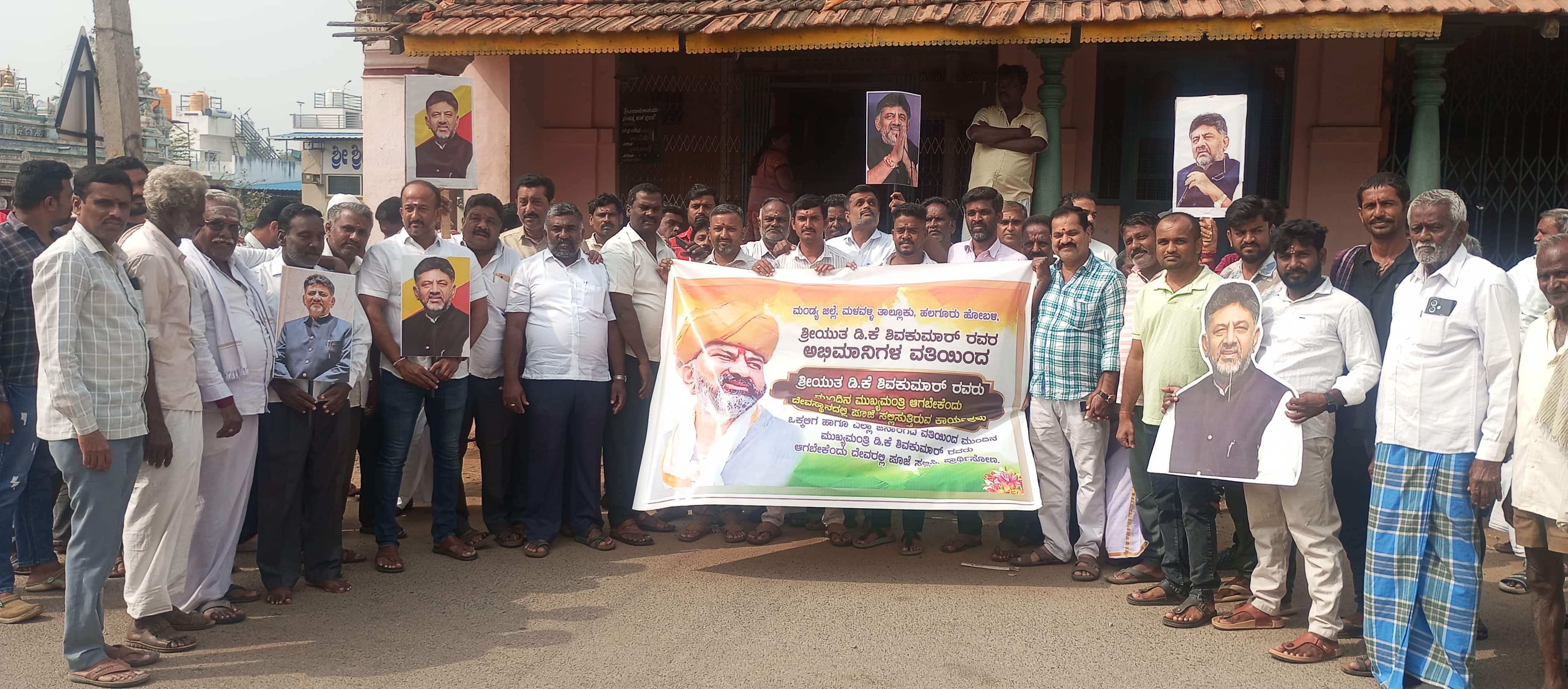 ಹಲಗೂರಿನಲ್ಲಿ ಡಿಸಿಎಂ ಡಿ.ಕೆ.ಶಿವಕುಮಾರ್ ಅಭಿಮಾನಿಗಳಿಂದ ಗಣೇಶ ದೇವಸ್ಥಾನದ ಆವರಣದಲ್ಲಿ ವಿಶೇಷ ಪೂಜೆ ಸಲ್ಲಿಸಲಾಯಿತು.
