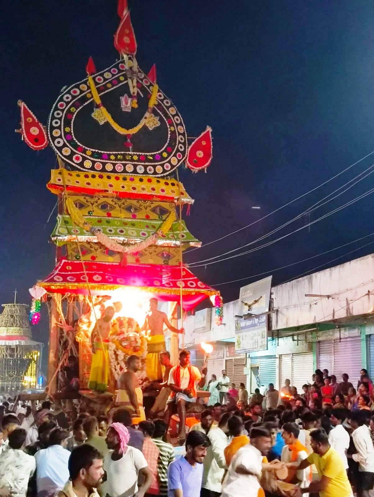 ಬಳಿಕ ವಿಶೇಷ ಪೂಜೆಯೊಂದಿಗೆ ರಾಜಬೀದಿ ಮಾರ್ಗವಾಗಿ ಕನಕಾಚಲ ದೇವಸ್ಥಾನದ ಸ್ವ-ಸ್ಥಾನಕ್ಕೆ ಮರಳಿತು. ಬೀದಿಯುದ್ದಕ್ಕೂ ನೆರೆದಿದ್ದ ಭಕ್ತರು ಹೂ,ಕಾಯಿ ಅರ್ಪಿಸಿ ಭಕ್ತಿ ಸಮರ್ಪಿಸಿದರು. ಪುರುಷರಿಗಿಂತ ಮಹಿಳೆಯರು ಹೆಚ್ಚಿನ ಸಂಖ್ಯೆಯಲ್ಲಿ ರಥಬೀದಿಗೆ ಧಾವಿಸಿ ಉಚ್ಛಾಯದ ವೈಭವ ಕಣ್ತುಂಬಿಕೊಂಡರು. ಆಕಾಶದೆತ್ತರಕ್ಕೆ ಸಿಡಿಯುವ ಬಣ್ಣದ ಪಟಾಕಿಗಳು ನೋಡುಗರ ಕಣ್ಮನ ಸೆಳೆದವು.ದೇವಸ್ಥಾನ ವ್ಯವಸ್ಥಾಪಕ ಸಿದ್ದಲಿಂಗಯ್ಯಸ್ವಾಮಿ, ಸುದರ್ಶನರೆಡ್ಡಿ, ಕನಕರೆಡ್ಡಿ ಮಹಲಿನಮನಿ,ಶಾಮಸಿಂಗ್ ರಜಪೂತ, ಈರಣ್ಣ ಚಿತ್ರಗಾರ, ರಾಮಕೃಷ್ಣಾರೆಡ್ಡಿ, ಗುಂಡಪ್ಪ ಚಿತ್ರಗಾರ,ನಾಗರಾಜ ಚಿತ್ರಗಾರ, ಉಮೇಶ ಚಿತ್ರಗಾರ, ರಾಘವೇಂದ್ರ ಚಿತ್ರಗಾರ ಸೇರಿದಂತೆ ಸಾವಿರಾರು ಭಕ್ತರು ಇದ್ದರು.