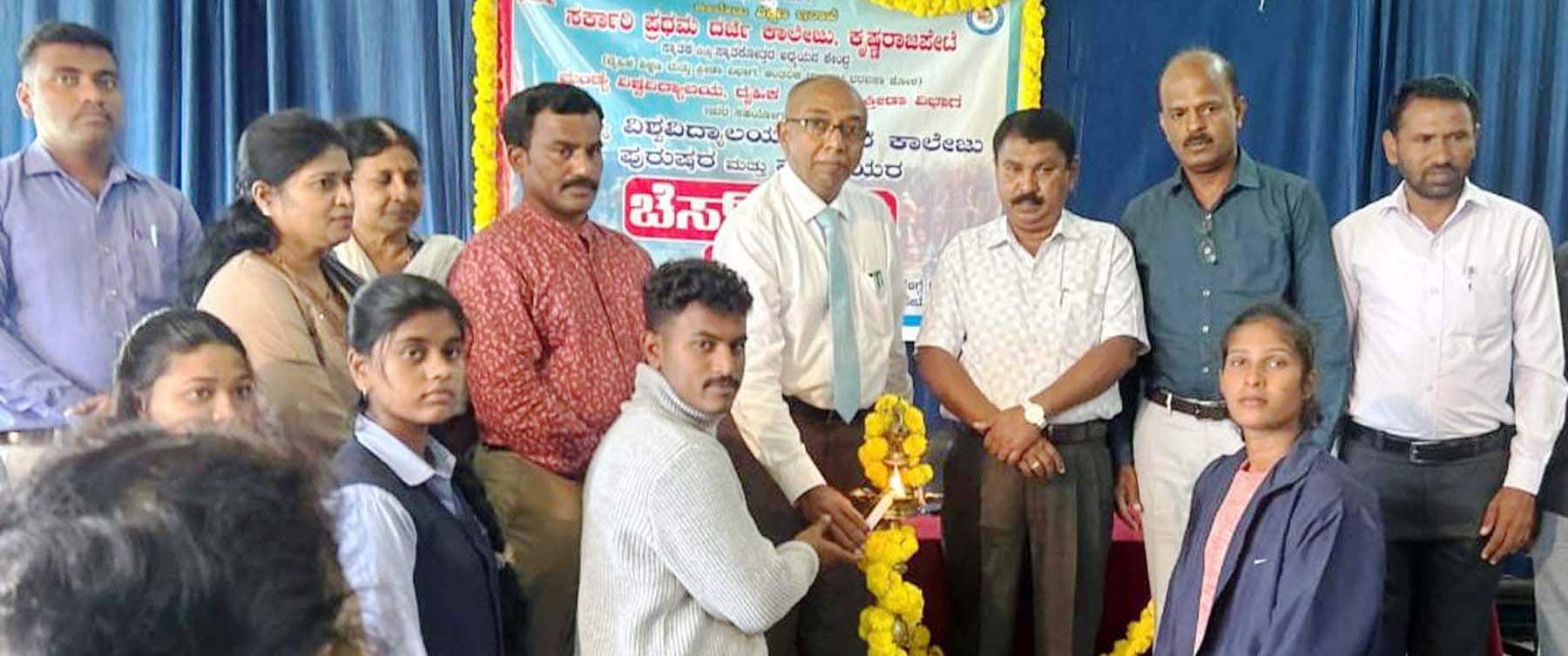 ಪಟ್ಟಣದ ಸರ್ಕಾರಿ ಪ್ರಥಮ ದರ್ಜೆ ಕಾಲೇಜಿನ ಕ್ರೀಡಾ ವಿಭಾಗವು ಮಂಡ್ಯ ವಿವಿ ಸಹಯೋಗದಲ್ಲಿ ಆಯೋಜಿಸಿದ್ದ ಅಂತರ ಕಾಲೇಜು ಪುರುಷ ಮತ್ತು ಮಹಿಳಾ ವಿಭಾಗಗಳ ಚದುರಂಗ ಸ್ಪರ್ಧೆಗೆ ಚಾಲನೆ ನೀಡಿ ಮಾತನಾಡಿ, ಇಂದು ಜಗತ್ತಿನಲ್ಲಿ ಕ್ರೀಡೆ ಉನ್ನತ ಸ್ಥಾನ ಗಳಿಸಿದೆ. ಭಾರತವು ಎಲ್ಲಾ ಕ್ರೀಡೆಗಳಲ್ಲಿಯೂ ತನ್ನ ಪ್ರತಿಭೆಯನ್ನು ತೋರಿಸುತ್ತಿದೆ ಎಂದರು.ಕಾಲೇಜು ಕ್ರೀಡಾ ವಿಭಾಗದ ಸಂಚಾಲಕರು ಮಂಡ್ಯ ವಿವಿ ದೈಹಿಕ ಶಿಕ್ಷಣ ಮತ್ತು ಕ್ರೀಡಾ ವಿಭಾಗದ ಸಹಯೋಗದಲ್ಲಿ ಚದುರಂದ ಸ್ಪರ್ಧೆ ಆಯೋಜಿಸಿದ್ದು, 70ಕ್ಕೂ ಹೆಚ್ಚು ಸ್ಪರ್ಧಾಳುಗಳು ಭಾಗವಹಿಸಿ ಕ್ರೀಡಾ ಸ್ಫೂರ್ತಿ ಮೆರೆಯುತ್ತಿದ್ದಾರೆ ಎಂದು ಮೆಚ್ಚುಗೆ ವ್ಯಕ್ತಪಡಿಸಿದರು.