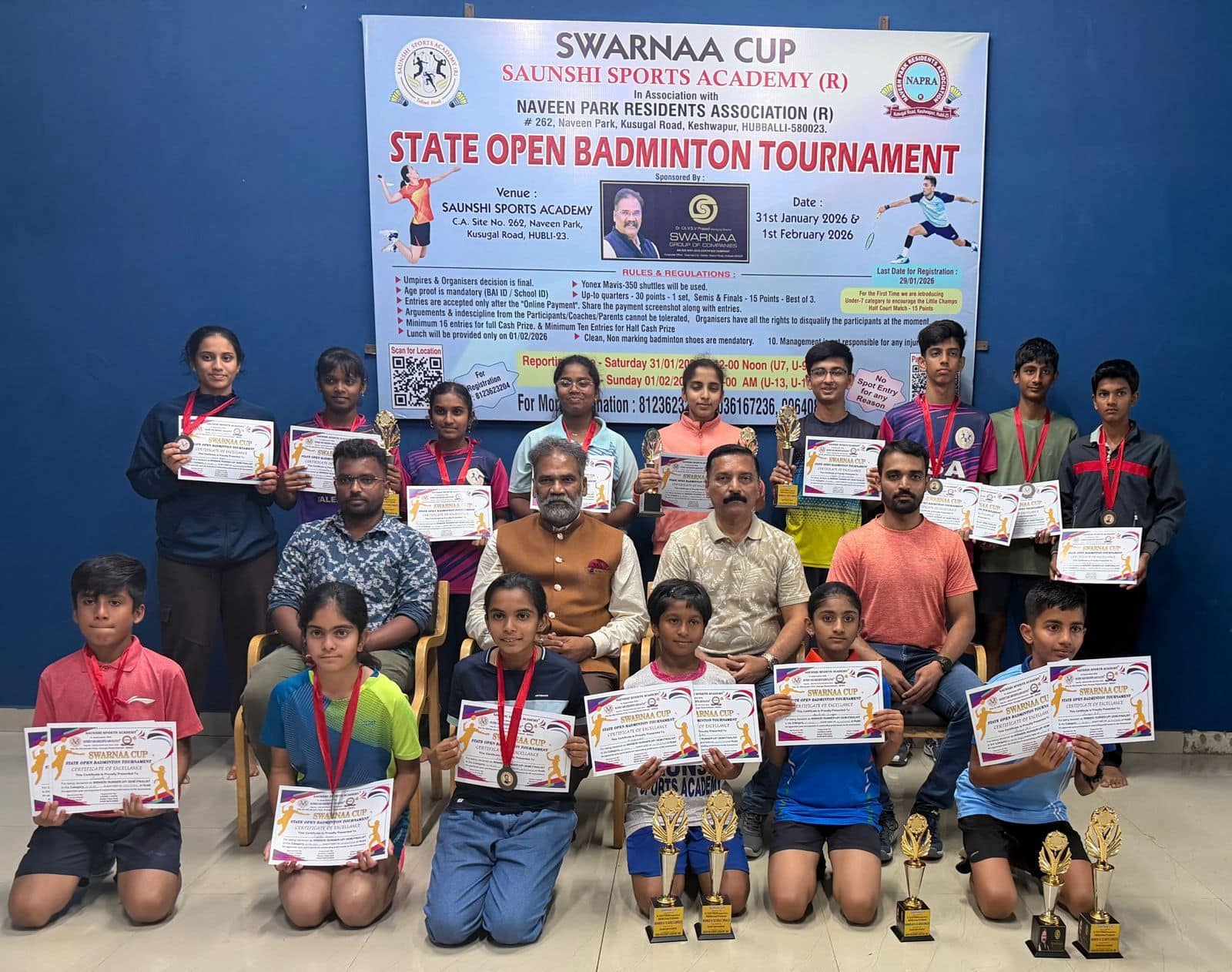 ಭವಿಷ್ಯತ್ತಿನ ಮಕ್ಕಳಲ್ಲಿ ಕ್ರೀಡಾ ಮನೋಭಾವ ಬೆಳೆಸಲು ಹಾಗೂ ಎಲ್ಲ ವರ್ಗದವರಿಗೂ ಉಪಯೋಗವಾಗಲಿ ಎಂದು 10 ವರ್ಷಗಳ ಹಿಂದೆ ಡಾ. ವಿಜಯ ಸಂಕೇಶ್ವರ ನೇತೃತ್ವದಲ್ಲಿ ನವೀನ್ ಪಾರ್ಕಿನಲ್ಲಿ ಅಂತಾರಾಷ್ಟೀಯ ಮಟ್ಟದ 4 ಉಡನ್ ಕೋರ್ಟ್ ನಿರ್ಮಿಸಿಲಾಗಿದೆ. ಸ್ಪರ್ಧೆಯಲ್ಲಿ ಭಾಗವಹಿಸಿದ ಎಲ್ಲ ಸ್ಪರ್ಧಾಳುಗಳಿಗೆ ಹಾಗೂ ವಿಜೇತರಿಗೆ ಅಭಿನಂದನೆ ಸಲ್ಲಿಸಿದರು.ಹಾವೇರಿ, ದಾವಣಗೆರೆ, ಶಿವಮೊಗ್ಗ, ಧಾರವಾಡ, ಉತ್ತರ ಕನ್ನಡ, ಬೆಳಗಾವಿ, ಬಳ್ಳಾರಿ, ಗದಗ, ವಿಜಯನಗರ, ರಾಯಚೂರು ಸೇರಿದಂತೆ ಹಲವು ಜಿಲ್ಲೆಗಳಿಂದ 105 ಯುವ ಕ್ರೀಡಾ ಪಟುಗಳು ಭಾಗವಹಿಸಿದ್ದರು. ಸಂಶಿ ಸ್ಪೊರ್ಟ್ಸ್ ಅಕಾಡೆಮಿ ಅಧ್ಯಕ್ಷ ನಾಗೇಂದ್ರ ಸಂಶಿ, ಮುಖ್ಯ ತರಬೇತುದಾರ ಸಾಗರ್ ಸಂಶಿ, ರಾಜೇಶ್ ಬಳ್ಳಾರಿ ಸೇರಿದಂತೆ ಹಲವರಿದ್ದರು.