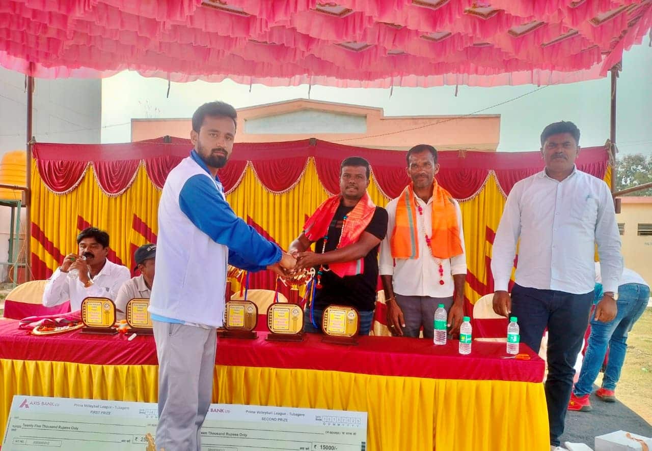 ವಿಜೇತ ತಂಡಕ್ಕೆ ₹25,000 ನಗದು ಬಹುಮಾನ ಹಾಗೂ ಪ್ರಶಸ್ತಿ ಫಲಕ ಮತ್ತು ರನ್ನರ್ ಅಫ್ ತಂಡಕ್ಕೆ ₹15,000 ನಗದು ಮತ್ತು ಪ್ರಶಸ್ತಿ ಫಲಕ ವಿತರಿಸಲಾಯಿತು.ಗ್ರಾಮ ಪಂಚಾಯಿತಿ ಸದಸ್ಯ ಕೃಷ್ಣಪ್ಪ, ಬ್ಲಾಕ್ ಕಾಂಗ್ರೆಸ್ ಅಧ್ಯಕ್ಷ ರವಿ ಸಿದ್ದಪ್ಪ, ವಕೀಲ ಪ್ರತಾಪ್, ಯುವ ಮುಖಂಡ ಉದಯ ಆರಾಧ್ಯ, ಹಿರಿಯ ವಾಲಿಬಾಲ್ ಆಟಗಾರ ಎಸ್.ಆರ್. ಅಶೋಕ್, ಹಾಗೂ ಆಯೋಜಕ ವಿಕಾಸ್, ರವಿ ಟಿ.ಡಿ., ಶ್ರೀಕಾಂತ, ಮಂಜುನಾಥ, ರಾಘವೇಂದ್ರ ಮನೋಹರ್, ಜಾಲಿ ವೆಂಕಟೇಶ್ ಮತ್ತಿತರರು ಹಾಜರಿದ್ದರು.