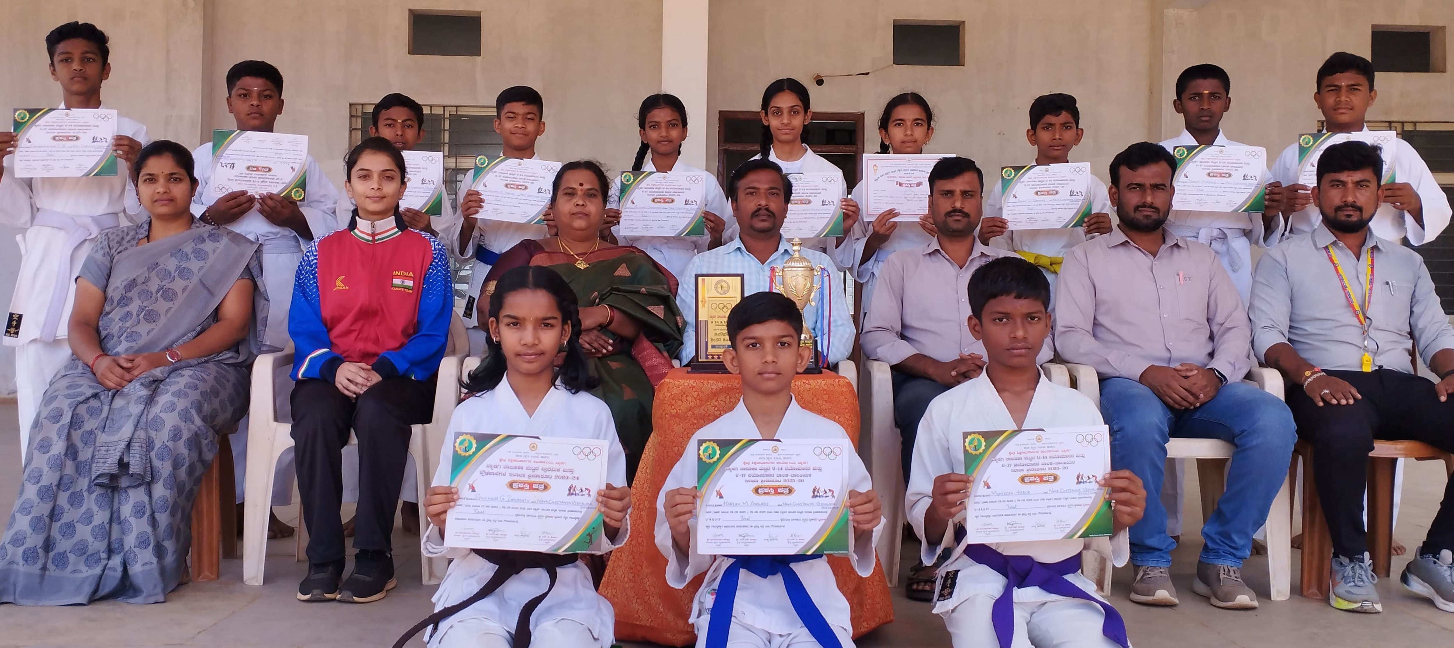 ತರಬೇತುದಾರರಾದ ಮನಿಷಾ ಕಬ್ಬೂರ ಮಾತನಾಡಿ, ವಿದ್ಯಾರ್ಥಿಗಳು ಕರಾಟೆ ಕಲಿಯುವುದರಿಂದ ಸಂಕಷ್ಟದ ಸಂದರ್ಭದಲ್ಲಿ ತಮ್ಮನ್ನು ತಾವು ರಕ್ಷಣೆ ಮಾಡಿಕೊಳ್ಳಲು ಸಾಧ್ಯವಾಗುತ್ತದೆ, ಅಲ್ಲದೇ ಸರ್ಕಾರ ಆಯೋಜಿಸುವ ಆಯ್ಕೆ ಪ್ರಕ್ರಿಯೆಯಲ್ಲಿ ಉತ್ತಮ ಪ್ರತಿಭೆಗಳಿಗೆ ಅವಕಾಶ ಸಿಗಲಿದ್ದು, ತಮ್ಮ ಸಾಮರ್ಥ್ಯವನ್ನು ಪ್ರದರ್ಶಿಸಿದಲ್ಲಿ ಕರಾಟೆಯಿಂದಲೇ ತಮ್ಮ ಬದುಕನ್ನು ಕಟ್ಟಿಕೊಳ್ಳಲು ಸಾಧ್ಯವಾಗಲಿದೆ ಎಂದರು. ಈ ವೇಳೆ ಸಂಸ್ಥೆಯ ಕಾರ್ಯದರ್ಶಿ ಶೇಖರಗೌಡ ಕರೇಗೌಡ್ರ, ಶಂಕರ ಬಣಗಾರ, ಎಸ್.ಕೆ. ವೀಣಾ, ಶಾಂತೇಶ ಪೂಜಾರ, ನಿಯಾಜ ಅಹಮ್ಮದ ಕೋಲ್ಕರ್ ಸೇರಿದಂತೆ ಹಲವರು ಉಪಸ್ಥಿತರಿದ್ದರು.ಆಯ್ಕೆಯಾದ ವಿದ್ಯಾರ್ಥಿಗಳು: ಸಿಂಚನಾ ಇಂಡಿಮಠ (ಬ್ರೌನ್ಬೆಲ್ಟ್), ಹರೀಶ ಅಂಗಡಿ (ಬ್ಲೂಬೆಲ್ಟ), ಮೋಹಿದ್ದಿನ್ ಹೆರೂರ (ಪರ್ಪಲ್ ಬೆಲ್ಟ್) ರಾಜ್ಯ ಮಟ್ಟದ ಸ್ಪರ್ಧೆಗಳಿಗೆ ಆಯ್ಕೆಯಾದರೇ, ಚಂದ್ರಶೇಖರ ಬಣಗಾರ, ಆಕಾಶ ಪೂಜಾರ, ಹಾಲನಗೌಡ ಭದ್ರ ಗೌಡರ, ಚಂದನ ಅಂಗಡಿ, ಗೌತಮಿ ಸಂಕಣ್ಣನವರ, ಅಭಯ ಬಣಕಾರ, ಹರ್ಷ ಕೋಡಿಹಳ್ಳಿ, ಧರಣೀಶ ತೇವರಿ, ಖುಷಿ ಬಣಗಾರ, ಸಾಕ್ಷಿ ಪಾಟೀಲ, ವರ್ಣಿತಾ ಬನ್ನಿಹಟ್ಟಿ ಮತ್ತು ತನುಶ್ರೀ ಗೌಡರ ಜಿಲ್ಲಾ ಮಟ್ಟಕ್ಕೆ ಆಯ್ಕೆಯಾಗಿದ್ದಾರೆ.;Resize=(128,128))