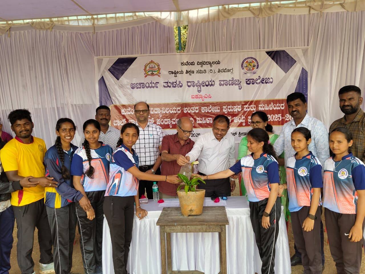 ಜಿಲ್ಲಾ ಬಾಲ್ ಬ್ಯಾಡ್ಮಿಂಟನ್ ಅಸೋಸಿಯೇಷನ್ ಅಧ್ಯಕ್ಷ ಅನಿಲ್ ಸಾಗರ್ ಮಾತನಾಡಿ, ಕ್ರೀಡಾಕೂಟ ಬಂದಾಗ ಮಾತ್ರ ಕ್ರೀಡಾ ತರಬೇತಿಯಲ್ಲಿ ಭಾಗವಹಿಸುವ ಸಕ್ರಿಯತೆ ತೋರದೆ, ಅಭ್ಯಾಸ ನಿರಂತರವಾಗಿರಲಿ ಎಂದು ಹೇಳಿದರು.ಕುವೆಂಪು ವಿವಿ ದೈಹಿಕ ಶಿಕ್ಷಣ ವಿಭಾಗ ನಿರ್ದೇಶಕ ಡಾ.ಎನ್.ಡಿ.ವಿರೂಪಾಕ್ಷ ಮಾತನಾಡಿದರು. ಪ್ರಾಂಶುಪಾಲರಾದ ಪಿ.ಆರ್.ಮಮತಾ ಅಧ್ಯಕ್ಷತೆ ವಹಿಸಿದ್ದರು. ಎ.ಟಿ.ಎನ್.ಸಿ.ಸಿ ವಿಶೇಷ ಕರ್ತವ್ಯಾಧಿಕಾರಿ ಡಾ.ಆರ್.ಎಂ.ಜಗದೀಶ್, ಶಿಕಾರಿಪುರ ಸರ್ಕಾರಿ ಪ್ರಥಮ ದರ್ಜೆ ಕಾಲೇಜಿನ ದೈಹಿಕ ಶಿಕ್ಷಣ ನಿರ್ದೇಶಕ ಎಸ್.ವಿ.ನಾರಾಯಣ್, ಎ.ಟಿ.ಎನ್.ಸಿ.ಸಿ ದೈಹಿಕ ಶಿಕ್ಷಣ ನಿರ್ದೇಶಕ ಡಾ.ಅಂತೋನಿ ಫ್ರಾನ್ಸಿಸ್ ಉಪಸ್ಥಿತರಿದ್ದರು. ವಿಶ್ವವಿದ್ಯಾಲಯ ವ್ಯಾಪ್ತಿಯ ಪುರುಷ ಮತ್ತು ಮಹಿಳೆಯರ 25 ತಂಡಗಳು ಭಾಗವಹಿಸಿದ್ದವು.