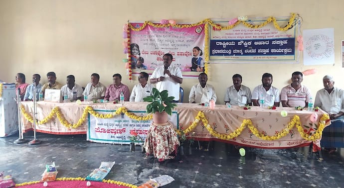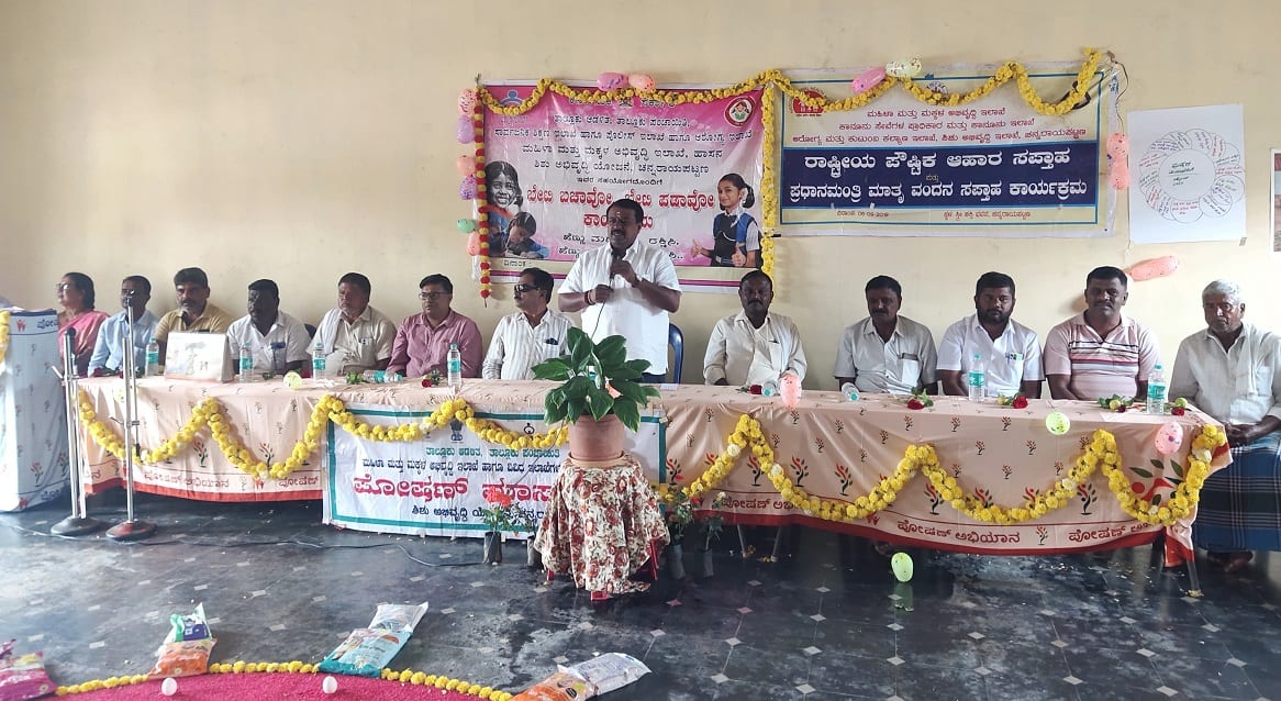 ಮಳೆಗಾಲದಲ್ಲಿ ನೀರನ್ನು ಕುದಿಸಿ ಆರಿಸಿ ಕುಡಿಯುವುದು ಉತ್ತಮ ಸಾವಯವ ಕೃಷಿ ಮಾಡಿ ಅದರಿಂದ ಬರುವ ಆಹಾರ ಪದಾರ್ಥಗಳನ್ನು ಉಪಯೋಗಿಸಿ ಇದರಿಂದ ಆರೋಗ್ಯ ವೃದ್ಧಿಯಾಗುತ್ತದೆ. ತರಕಾರಿ ಬೆಳೆಗಳಿಗೂ ಸಹ ಔಷಧಿ ಸಿಂಪಡಣೆ ಮಾಡುತ್ತಾರೆ. ಮೆಣಸಿನ ಕಾಯಿಗೂ ಸಹ ಔಷಧಿ ಸಿಂಪರಣೆ ಮಾಡುತ್ತಾರೆ. ಇದರಿಂದ ಆರೋಗ್ಯದ ಮೇಲೆ ದುಷ್ಪರಿಣಾಮ ಬೀರುತ್ತದೆ ಎಂದರು. ಕೇಂದ್ರ ಸರ್ಕಾರ ಪೋಷಣ್ ಅಭಿಯಾನ ಯೋಜನೆ ಅಡಿ ಪೌಷ್ಟಿಕ ಆಹಾರದ ಕಿಟ್ಗಳನ್ನು ಬಾಣಂತಿಯರು ಕಿಶೋರಿಯರು 6 ವರ್ಷದ ಒಳಗಿನ ಮಕ್ಕಳಿಗೆ ಉಚಿತವಾಗಿ ವಿತರಿಸುತ್ತಿದೆ ಇದರ ಅನುಕೂಲ ಪಡೆದುಕೊಳ್ಳಬೇಕು ಎಂದು ತಿಳಿಸಿದರು. ತಾಲೂಕಿನಲ್ಲಿ ಅಂಗನವಾಡಿ ಕಾರ್ಯಕರ್ತೆಯರು ಪ್ರಾಮಾಣಿಕ ಸೇವೆ ಮಾಡಬೇಕು ಎಂದು ಸೂಚನೆ ನೀಡಿದರು.ಸಮಾರಂಭದಲ್ಲಿ ಡಾ. ವರದರಾಜ್, ಗ್ರಾಮ ಪಂಚಾಯತಿ ಅಧ್ಯಕ್ಷ ಅಣ್ಣೇಗೌಡ, ಎಪಿಎಂಸಿ ಮಾಜಿ ಅಧ್ಯಕ್ಷ ಬಿ. ಎಚ್. ಶಿವಣ್ಣ, ಮೇಲ್ವಿಚಾರಕಿ ಜಯಲಕ್ಷ್ಮಮ್ಮ, ಮುಖಂಡರಾದ ಮಂಜುನಾಥ್, ಮನು, ಚಂದ್ರಣ್ಣ, ಲಕ್ಷ್ಮಣ್, ಹರೀಶ್, ರಘು, ಧರಣೇಂದ್ರ, ಕಾಳೇಶ್, ಸಂಪತ್ ಕುಮಾರ್, ಭಾಗ್ಯಮ್ಮ, ರಮ್ಯಾ, ರಾಧಾ, ವೃತ್ತದ ಅಂಗನವಾಡಿ ಕಾರ್ಯಕರ್ತೆಯರು ಇತರರು ಹಾಜರಿದ್ದರು.