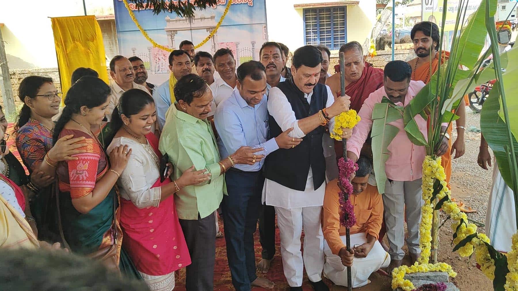 ಧಾರ್ಮಿಕ ದತ್ತಿ ಇಲಾಖೆ ವತಿಯಿಂದ ಪಟ್ಟಣದ ಇತಿಹಾಸ ಪ್ರಸಿದ್ಧ ಶ್ರೀಮಹಾಗಣಪತಿ ದೇವಸ್ಥಾನದ ಮಹಾದ್ವಾರ ಮತ್ತು ಮುಖಮಂಟಪ ಕಾಮಗಾರಿಗೆ ಕ್ಷೇತ್ರದ ಶಾಸಕ ಹಾಗೂ ಅರಣ್ಯ ಕೈಗಾರಿಕಾ ನಿಗಮದ ಅಧ್ಯಕ್ಷ ಗೋಪಾಲಕೃಷ್ಣ ಬೇಳೂರು ಶಂಕುಸ್ಥಾಪನೆ ನೆರವೇರಿಸಿದರು.