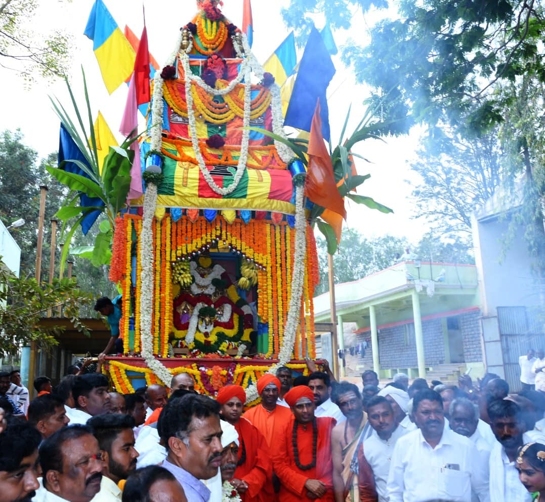 ವನಕಲ್ಲು ಮಠದ ಡಾ.ಶ್ರೀ ಬಸವರಮಾನಂದ ಸ್ವಾಮೀಜಿ ಮಾತನಾಡಿ, ಇಂದು ಮನುಷ್ಯನ ಜೀವನ ಯಾಂತ್ರಿಕವಾಗಿದ್ದು ಬಿಡುವಿಲ್ಲದ ಕಾರ್ಯದಿಂದ ಮಾನಸಿಕ ನೆಮ್ಮದಿ ಕಳೆದುಕೊಂಡು ಖಿನ್ನತೆಗೆ ಒಳಗಾಗಿದ್ದಾನೆ. ಗ್ರಾಮದ ಜನತೆ ಶಾಂತಿ, ನೆಮ್ಮದಿಯಾಗಿರಲೆಂದು ನಮ್ಮ ಹಿರಿಯರು ಪ್ರತಿ ಗ್ರಾಮದಲ್ಲಿಯೂ ದೇವಾಲಯಗಳನ್ನು ನಿರ್ಮಿಸುತ್ತಿದ್ದರು. ಈ ಕಾರ್ಯ ಇಂದಿಗೂ ನಡೆಯುತ್ತಿದೆ, ಮುಂದೆಯೂ ನಡೆಯುತ್ತದೆ ಎಂದರು.ರಥೋತ್ಸವದಲ್ಲಿ ಭೋವಿ ಮಠದ ಶ್ರೀ ಇಮ್ಮಡಿ ಸಿದ್ದರಾಮೇಶ್ವರ ಸ್ವಾಮೀಜಿ, ಗ್ರಾಪಂ ಮಾಜಿ ಅಧ್ಯಕ್ಷ ರಾಮಾಂಜೀನೇಯ, ಮುಖಂಡ ನಯಾಜ್ ಖಾನ್ ಸೇರಿದಂತೆ ಭಕ್ತಾದಿಗಳು ಉಪಸ್ಥಿತರಿದ್ದರು.