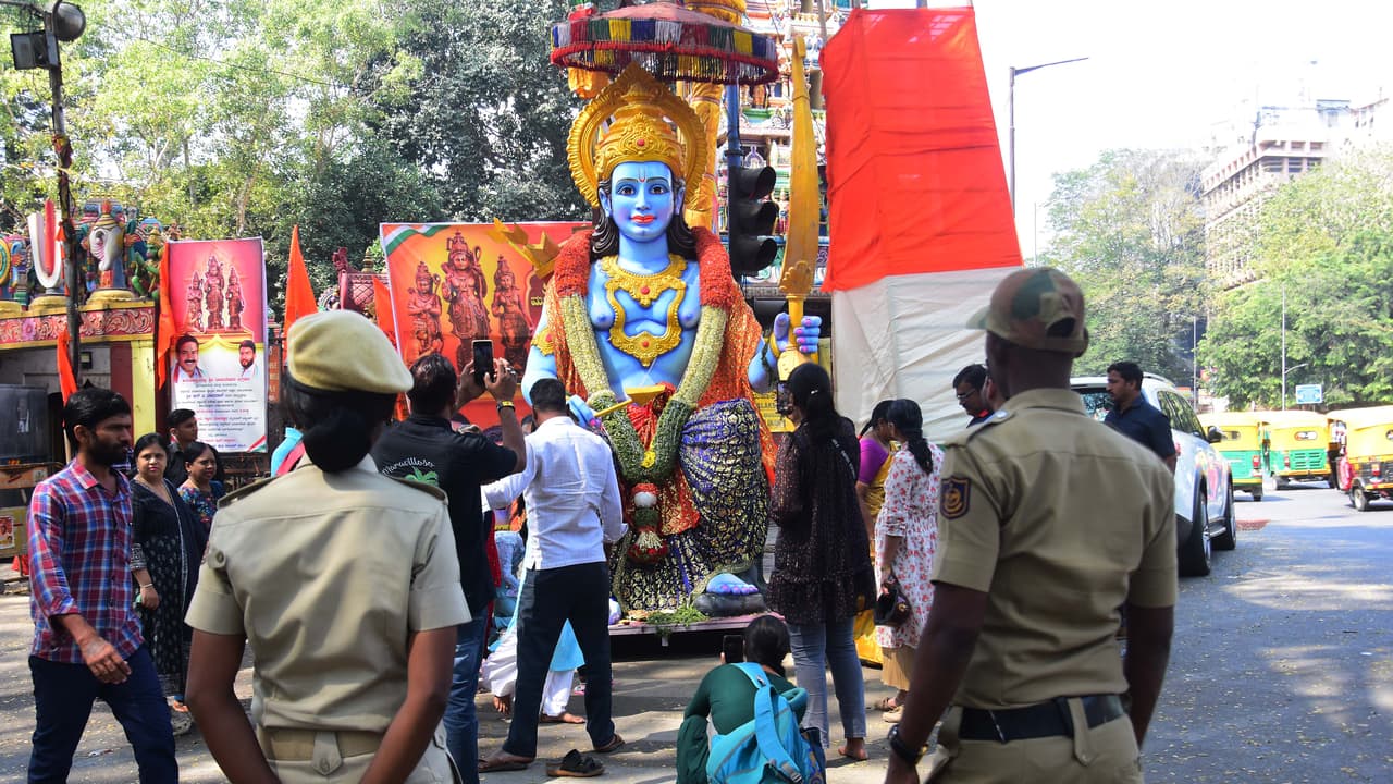ಶ್ರೀರಾಮಚಂದ್ರನ ಪ್ರಾಣ ಪ್ರತಿಷ್ಠಾಪನೆ ಹಿನ್ನೆಲೆಯಲ್ಲಿ ನಗರದಲ್ಲಿ ಅಹಿತರಕ ಘಟನೆ ನಡೆಯದಂತೆ ಪೊಲೀಸರು ವಿಶೇಷ ಎಚ್ಚರಿಕೆ ವಹಿಸಿದ್ದಾರೆ.
