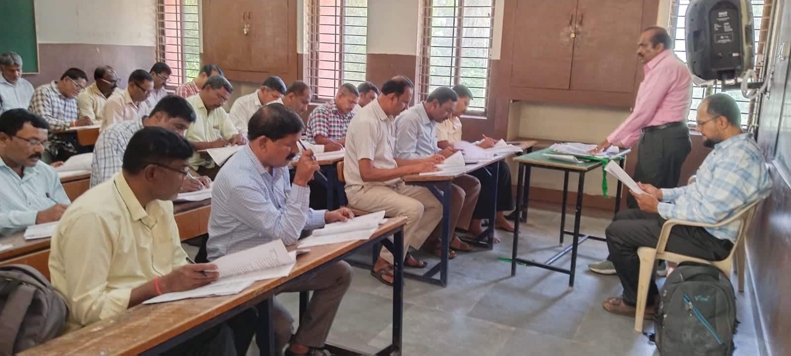 ಕನ್ನಡಪ್ರಭ ವಾರ್ತೆ ಕೋಲಾರವಿದ್ಯಾರ್ಥಿಗಳ ಭವಿಷ್ಯದ ದೃಷ್ಟಿಯಿಂದ ಸಮಯ ಪಾಲನೆಯೊಂದಿಗೆ ಕ್ರಮಬದ್ಧ, ವಿದ್ಯಾರ್ಥಿಸ್ನೇಹಿ ಮೌಲ್ಯಮಾಪನ ನಡೆಸಿ ಎಂದು ಎಸ್ಸೆಸ್ಸೆಲ್ಸಿ ಪರೀಕ್ಷಾ ಜಂಟಿ ಹಾಗೂ ಉಪ ಮೌಲ್ಯಮಾಪಕರು, ಕೇಂದ್ರ ವ್ಯವಸ್ಥಾಪಕರಿಗೆ ಕರೆ ನೀಡಿದ ಡಿಡಿಪಿಐ ಅಲ್ಮಾಸ್ ಫರ್ವೀನ್ ತಾಜ್ ಏ.೮ ರಿಂದ ಪೂರ್ಣ ಪ್ರಮಾಣದಲ್ಲಿ ಮೌಲ್ಯಮಾಪನ ಕಾರ್ಯ ಆರಂಭಗೊಳ್ಳಲಿದೆ ಎಂದು ತಿಳಿಸಿದರು. ಮಂಗಳವಾರ ನಗರದ ವಿವಿಧ ಮೌಲ್ಯಮಾಪನ ಕೇಂದ್ರಗಳಲ್ಲಿ ಜಂಟಿ ಹಾಗೂ ಉಪ ಮೌಲ್ಯಮಾಪಕರು, ಜಿಲ್ಲಾಮಟ್ಟದ ಕಂಪ್ಯೂಟರ್ ಪ್ರೋಗ್ರಾಮರ್ಗಳು ಮೌಲ್ಯಮಾಪನ ಕಾರ್ಯದಲ್ಲಿ ಅನುಸರಿಸಬೇಕಾದ ನಿಯಮಗಳ ಪಾಲನೆ, ಅಂಕಗಳ ನೀಡಿಕೆ ಕುರಿತು ಅರಿವು ಮೂಡಿಸಿ ಮಾತನಾಡಿದರು.ಈ ಬಾರಿಯೂ ನೀವೇ ಗಣಕಯಂತ್ರದಲ್ಲಿ ಆನ್ಲೈನ್ನಲ್ಲಿ ದಾಖಲಿಸಬೇಕಾಗಿದೆ, ಪ್ರತಿ ವಿದ್ಯಾರ್ಥಿಯ ಭವಿಷ್ಯ ಅಡಗಿರುವ ಈ ಮೌಲ್ಯಮಾಪನ ಕಾರ್ಯದಲ್ಲಿ ಉಪ ಮುಖ್ಯ ಮೌಲ್ಯಮಾಪಕರು ಹೊಣೆಗಾರಿಕೆಯಿಂದ ಕಾರ್ಯನಿರ್ವಹಿಸಬೇಕು, ಸಹ ಮೌಲ್ಯಮಾಪಕರು ಮೌಲ್ಯಮಾಪನ ನಡೆಸಿದ ಉತ್ತರ ಪತ್ರಿಕೆಗಳನ್ನು ಅಡ್ಡ ಪರಿಶೀಲನೆ ನಡೆಸಬೇಕು, ತಪ್ಪುಗಳು ಮಾಡಿದರೆ ದಂಡ ತೆರಬೇಕಾಗುತ್ತದೆ ಎಂದು ತಿಳಿಸಿದರು.ಕರ್ನಾಟಕ ಶಿಕ್ಷಣ ಕಾಯಿದೆ ೨೮ ಹಾಗೂ ೧೨೬ ರ ಅನ್ವಯ ಹಾಗೂ ಪ್ರೌಢಶಿಕ್ಷಣ ಪರೀಕ್ಷಾ ಮಂಡಳಿ ನಿಯಮಗಳು-೨೦೧೨ರಂತೆ ಮೌಲ್ಯಮಾಪನ ಕಾರ್ಯವನ್ನು ಕಡ್ಡಾಯಗೊಳಿಸಲಾಗಿದೆ ಸಕಾರಣವಿಲ್ಲದೇ ಮೌಲ್ಯಮಾಪನ ಕಾರ್ಯಕ್ಕೆ ಗೈರಾಗುವ ಶಿಕ್ಷಕರ ವಿರುದ್ದ ಶಿಸ್ತಿನ ಕ್ರಮ ತೆಗೆದುಕೊಳ್ಳಲಾಗುವುದು ಎಂದು ಎಚ್ಚರಿಸಿದರು.೧೮೩೩ ಮಂದಿಯಿಂದ ಮೌಲ್ಯಮಾಪನ ಕಾರ್ಯ