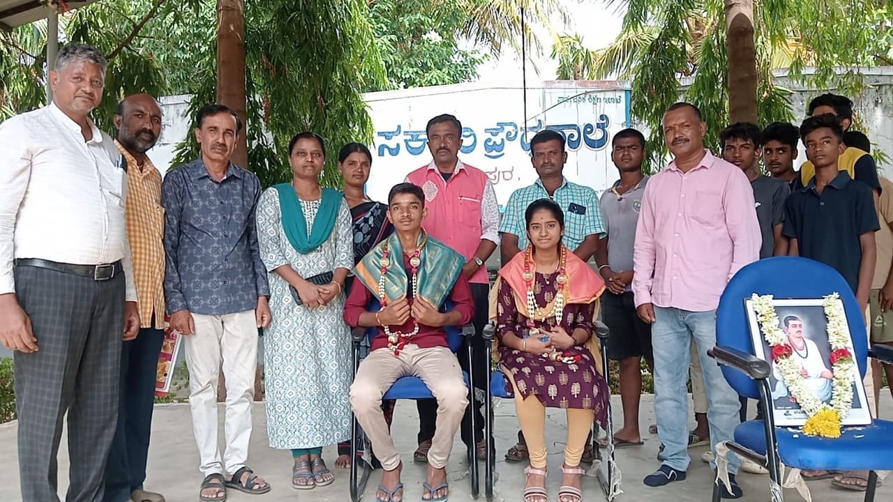 ಗಾರೆ ಕೆಲಸ ವೃತ್ತಿನಿರತ ನಿಂಗರಾಜು ಮತ್ತು ಜಯ ದಂಪತಿ ಪುತ್ರ ಮಹದೇವಸ್ವಾಮಿ ಇತ್ತೀಚೆಗೆ ನಡೆದ 10ನೇ ತರಗತಿ ಪರೀಕ್ಷೆಯಲ್ಲಿ 625ಕ್ಕೆ 609 ಅಂಕ ಗಳಿಸಿ ಶೇ.97.44ರಷ್ಟು ಸಾಧನೆಗೈದಿದ್ದಾನೆ.