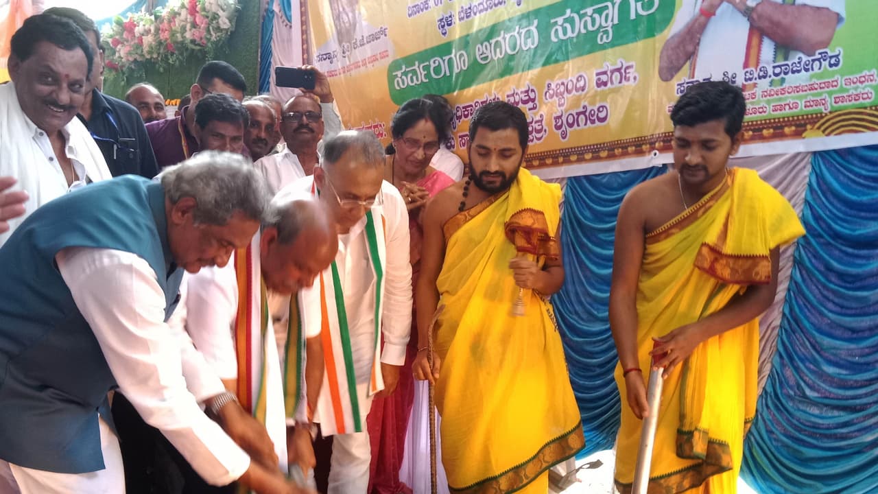 7 ಶ್ರೀ ಚಿತ್ರ 1-ಶೃಂಗೇರಿ ನೂತನ ನೂರುಬೆಡ್ ಆಸ್ಪತ್ರೆ ಕಟ್ಟಡಕ್ಕೆ ಆರೋಗ್ಯ ಸಚಿವ ದಿನೇಶ್ ಗುಂಡೂರಾವ್ ಶಂಕುಸ್ಥಾಪನೆ ನೆರವೇರಿಸಿದರು.ಇಂಧನ ಸಚಿವ ಕೆ,ಜಿ.ಜಾರ್ಜ್,ಶಾಸಕ ರಾಜೇಗೌಡ ಮತ್ತಿತರರು ಉಪಸ್ಥಿತರಿದ್ದರು.