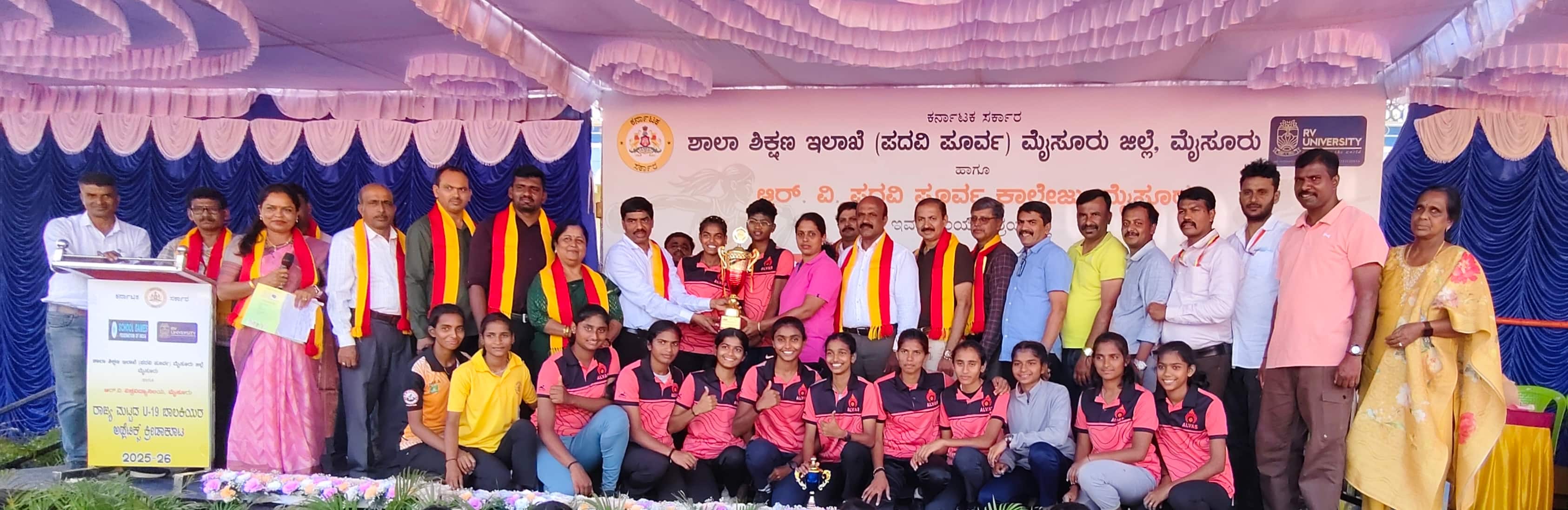 ಶಾಲಾ ಶಿಕ್ಷಣ ಇಲಾಖೆ (ಪದವಿಪೂರ್ವ) ಮೈಸೂರು ಹಾಗೂ ಆರ್ವಿ ಪದವಿಪೂರ್ವ ಕಾಲೇಜು ಮೈಸೂರು ಆಶ್ರಯದಲ್ಲಿ ಚಾಮುಂಡಿ ವಿಹಾರ ಸ್ಟೇಡಿಯಂನಲ್ಲಿ ನಡೆದ ಪದವಿಪೂರ್ವ ಕಾಲೇಜುಗಳ ರಾಜ್ಯಮಟ್ಟದ ಬಾಲಕಿಯರ ಅಥ್ಲೆಟಿಕ್ಸ್ ಕ್ರೀಡಾಕೂಟದಲ್ಲಿ ಆಳ್ವಾಸ್ ಪದವಿಪೂರ್ವ ಕಾಲೇಜು ಒಟ್ಟು 7 ಚಿನ್ನ, 3 ಬೆಳ್ಳಿ ಮತ್ತು 1 ಕಂಚಿನ ಪದಕಗಳೊಂದಿಗೆ ಒಟ್ಟು 11 ಪದಕಗಳನ್ನು ಗೆದ್ದಿದೆ. ರಾಷ್ಟ್ರಮಟ್ಟದ ಅಥ್ಲೆಟಿಕ್ಸ್ ಕ್ರೀಡಾಕೂಟಕ್ಕೆ 8 ಕ್ರೀಡಾಪಟುಗಳು ಆಯ್ಕೆಯಾಗಿದ್ದಾರೆ.ಬಾಲಕಿಯರ ವಿಭಾಗದಲ್ಲಿ: ನಾಗಿಣಿ - 800 ಮೀ. (ಪ್ರಥಮ), 1500 ಮೀ. (ಪ್ರಥಮ), ಗುಡ್ಡಗಾಡು ಓಟ (ಪ್ರಥಮ), 4*400ಮೀ ರಿಲೇ (ಪ್ರಥಮ), ಚರಿಷ್ಮಾ -3000 ಮೀ. (ಪ್ರಥಮ), 1500 ಮೀ. (ದ್ವಿತೀಯ), ಗುಡ್ಡಗಾಡು ಓಟ (ದ್ವಿತೀಯ), 4*400 ಮೀ. ರಿಲೇ (ಪ್ರಥಮ), ಗೋಪಿಕಾ ಜಿ.- 100 ಮೀ. (ಪ್ರಥಮ), 4*100 ಮೀ. ರಿಲೇ (ಪ್ರಥಮ), ಮಾನ್ವಿ ವಿ. ಶೆಟ್ಟಿ- 4*100ಮೀ ರಿಲೇ (ಪ್ರಥಮ), ಭಾನವಿ - 4*100ಮೀ ರಿಲೇ (ಪ್ರಥಮ), ವೈಷ್ಣವಿ - 4*100ಮೀ ರಿಲೇ (ಪ್ರಥಮ), ನಿರ್ಮಲಾ - 400 ಮೀ. ಹರ್ಡಲ್ಸ್ (ದ್ವಿತೀಯ), 4*400 ಮೀ. ರಿಲೇ (ಪ್ರಥಮ), ಜಾನಕಿ ಜಿ.ಸಿ. - 4*400ಮೀ ರಿಲೇ (ಪ್ರಥಮ), ಗಾನವಿ- 800 ಮೀ. (ತೃತೀಯ) ಸ್ಥಾನ ಪಡೆದಿದ್ದಾರೆ.