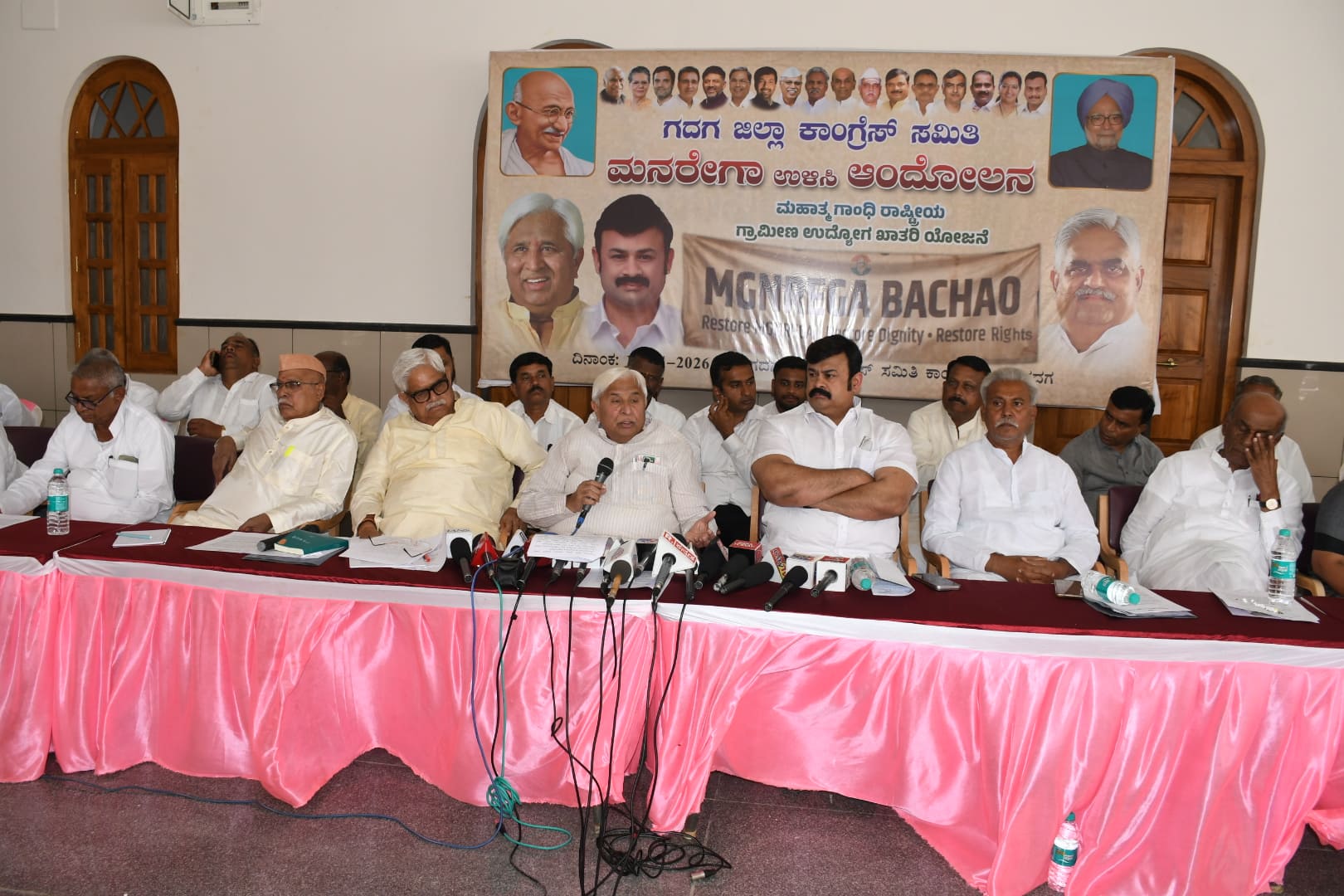 ಜಿಲ್ಲಾ ಕಾಂಗ್ರೆಸ್ ಅಧ್ಯಕ್ಷ ರೋಣ ಶಾಸಕ ಜಿ.ಎಸ್. ಪಾಟೀಲ ಮಾತನಾಡಿ, ಮನರೇಗಾ ಯೋಜನೆ ಹೆಸರು ಬದಲಾಯಿಸುವ ಮೂಲಕ ಕೇಂದ್ರ ಸರ್ಕಾರ ದುಷ್ಟ ಕೆಲಸ ಮಾಡಿದೆ. ಕಾಂಗ್ರೆಸ್ ನೇತೃತ್ವದ ನಮ್ಮ ಸರ್ಕಾರ ಅಧಿಕಾರದ ಸಂದರ್ಭದಲ್ಲಿ ಮಹಾತ್ಮ ಗಾಂಧಿ ಹೆಸರಲ್ಲಿ ಈ ಯೋಜನೆ ಆರಂಭಿಸಲಾಗಿತ್ತು. ಕೇಂದ್ರ ಸರ್ಕಾರ ಯೋಜನೆ ಹೆಸರು ತಿದ್ದುಪಡಿ ಮಾಡಿ ಮಹಾತ್ಮ ಗಾಂಧಿ ಹೆಸರನ್ನು ತೆಗೆಯಲಾಗಿದೆ. ಈ ತಿದ್ದುಪಡಿ ಯೋಜನೆಯಲ್ಲಿ ಬಡಜನರಿಗೆ ಅನ್ಯಾಯ ಆಗುವ ಅಂಶಗಳನ್ನು ಸೇರಿಸಲಾಗಿದೆ. ಈ ಹಿನ್ನೆಲೆ ಮನರೇಗಾ ಯೋಜನೆ ಬಚಾವೋ ಆಂದೋಲನವನ್ನು ರಾಜ್ಯಾದ್ಯಂತ ಹಮ್ಮಿಕೊಳ್ಳಲಾಗಿದೆ. ಬಡ ಜನರ ಉದ್ಯೋಗ ಕಸಿದುಕೊಳ್ಳುವ ಮನರೇಗಾ ತಿದ್ದುಪಡಿ ಯೋಜನೆಗೆ ಕಾಂಗ್ರೆಸ್ ವಿರೋಧವಿದೆ ಎಂದರು.ಸುದ್ದಿಗೋಷ್ಠಿಯಲ್ಲಿ ಮಾಜಿ ಶಾಸಕ ಬಿ.ಆರ್. ಯಾವಗಲ್ಲ, ರಾಮಕೃಷ್ಣ ದೊಡ್ಡಮನಿ, ರಾಮಣ್ಣ ಲಮಾಣಿ, ಸುಜಾತಾ ದೊಡ್ಡಮನಿ, ಹುಮಾಯನ್ ಮಾಗಡಿ, ದಶರಥ ಗಾಣಿಗೇರ, ಅಶೋಕ ಮಂದಾಲಿ, ಸೋಮನಕಟ್ಟಿಮಠ, ವಿದ್ಯಾದರ ದೊಡ್ಡಮನಿ, ವಿವೇಕ ಯಾವಗಲ್ಲ ಮುಂತಾದವರು ಇದ್ದರು.