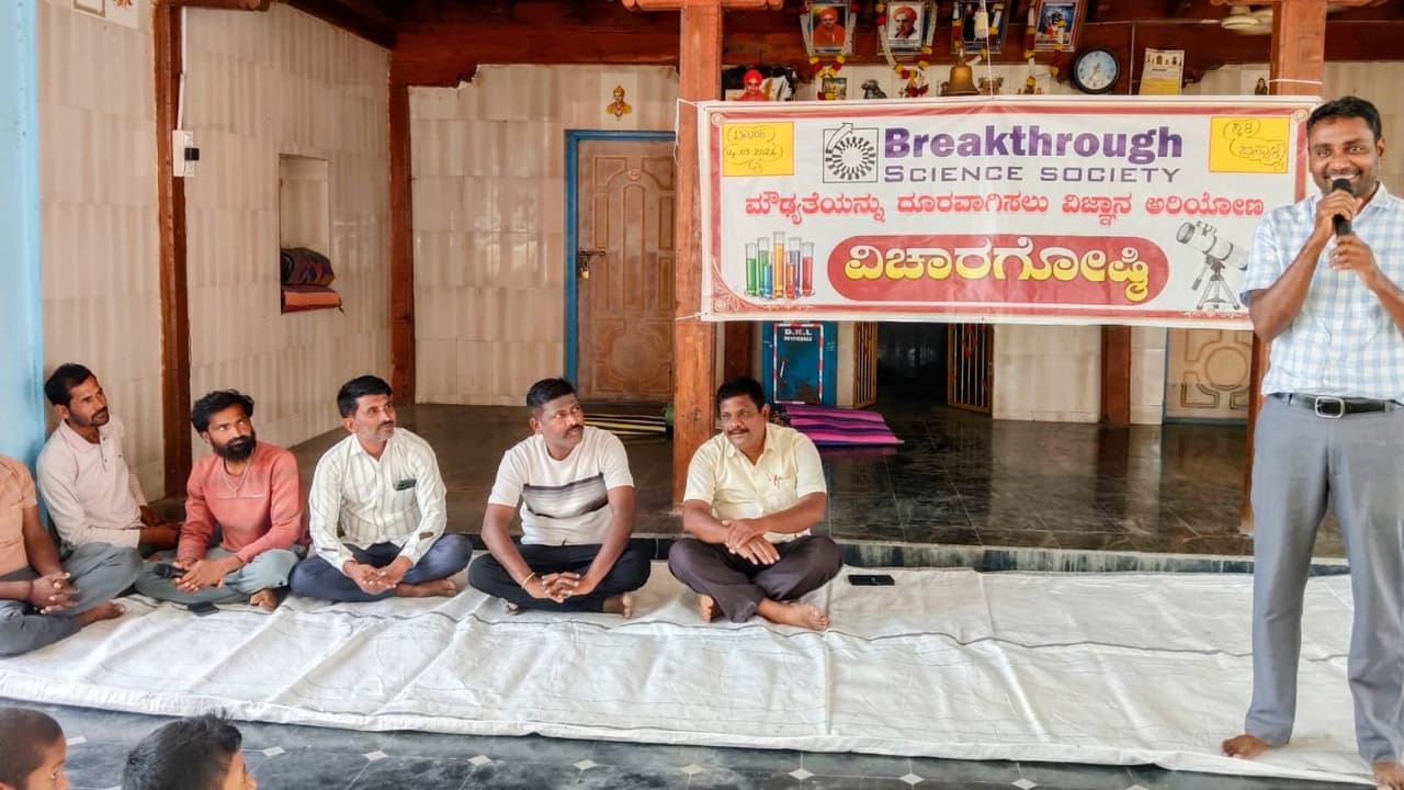 ತಾಲೂಕಿನ ಬಿನ್ನಾಳ ಗ್ರಾಮದ ಶ್ರೀಷಣ್ಮುಕೇಶ್ವರ ದೇವಸ್ಥಾನದ ಆವರಣದಲ್ಲಿ ಶನಿವಾರ ಬೆಂಗಳೂರಿನ ಬ್ರೇಕ್ ಥ್ರೂ ಸೈನ್ಸ್ ಸೋಸೈಟಿಯಿಂದ ಜರುಗಿದ ವಿಜ್ಞಾನ ಅರಿವು ಕಾರ್ಯಕ್ರಮವನ್ನುದ್ದೇಶಿಸಿ ಮಾತನಾಡಿದ ಅವರು,ಸಮಾಜದಲ್ಲಿ ಇನ್ನೂ ಕೆಲವು ಕಡೆ ಮೌಢ್ಯತೆ ಹಾಗೂ ಅಂಧಶ್ರದ್ಧೆ ಬೇರು ಬಿಟ್ಟಿರುವುದು ದುಃಖಕರ ಸಂಗತಿ. ಇಂತಹ ತಪ್ಪು ನಂಬಿಕೆಗಳಿಂದ ಹೊರಬರಲು ವಿಜ್ಞಾನಾಧಾರಿತ ಚಿಂತನೆ ಅತ್ಯಂತ ಅಗತ್ಯ ಎಂದರು.ಕಾರ್ಯಕ್ರಮದ ಅಧ್ಯಕ್ಷತೆ ವಹಿಸಿದ್ದ ಗ್ರಾಮದ ಪತ್ರಕರ್ತ ಜಗದೀಶ ಚಟ್ಟಿ ಮಾತನಾಡಿ, ಮಕ್ಕಳು ಮತ್ತು ಯುವಕರು ಪ್ರಶ್ನಿಸುವ ಮನೋಭಾವ ಬೆಳೆಸಿಕೊಳ್ಳಬೇಕು.ಯಾವುದೇ ಘಟನೆ ಅಥವಾ ವಿಷಯ ಅಂಧವಾಗಿ ನಂಬುವುದಕ್ಕಿಂತ ಅದರ ಹಿಂದೆ ಇರುವ ವೈಜ್ಞಾನಿಕ ಕಾರಣ ಅರಿತುಕೊಳ್ಳುವುದು ಮುಖ್ಯ ಎಂದು ಸಲಹೆ ನೀಡಿದರು.