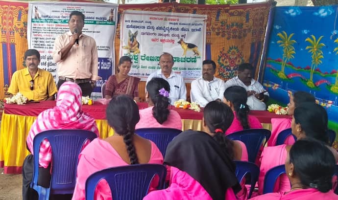 ರೇಬೀಸ್ ಎಂಬುದು ಮನುಷ್ಯ ಮತ್ತು ಪ್ರಾಣಿಗಳ ಮೆದುಳು ಹಾಗೂ ನರಮಂಡಲವನ್ನು ಹಾನಿಗೊಳಿಸುವ ವೈರಸ್ ಆಗಿದೆ. ಮಾರಕ ಕಾಯಿಲೆಯಾದ ರೇಬೀಸ್ ಹಾಗೂ ಹುಚ್ಚುನಾಯಿ ಕಡಿತದಿಂದ ಉಂಟಾಗುವ ದುಷ್ಪರಿಣಾಮ ಕುರಿತು ಜಾಗೃತಿ ಮೂಡಿಸಿ ಅದನ್ನು ತಡೆಗಟ್ಟುವ ನಿಟ್ಟಿನಲ್ಲಿ ಪಶುಪಾಲನಾ ಇಲಾಖೆ ಅಧಿಕಾರಿಗಳು ಕಾರ್ಯೋನ್ಮುಖರಾಗಬೇಕು ಎಂದರು.ತಾಲೂಕು ಮುಖ್ಯ ಪಶುವೈದ್ಯಾಧಿಕಾರಿ ಡಾ.ಶರತ್ರಾಜ್ ಮಾತನಾಡಿ, ವೈರಾಣುವಿನಿಂದ ಬರುವ ರೇಬೀಸ್ ಒಂದು ಮಾರಣಾಂತಿಕ ಕಾಯಿಲೆ. ಇದನ್ನು ಲಸಿಕೆ ಹೊರತು ಪಡಿಸಿದರೆ ಬೇರ್ಯಾವುದೇ ಚಿಕಿತ್ಸೆಯಿಂದ ಗುಣಪಡಿಸಲು ಸಾಧ್ಯವಿಲ್ಲ. ಹಾಗಾಗಿ ಪ್ರತಿಯೊಬ್ಬರೂ ತಮ್ಮ ಮನೆಗಳಲ್ಲಿನ ಸಾಕು ನಾಯಿ ಮತ್ತು ಬೆಕ್ಕುಗಳಿಗೆ ಲಸಿಕೆ ಹಾಕಿಸಬೇಕೆಂದು ತಿಳಿಸಿದರು.