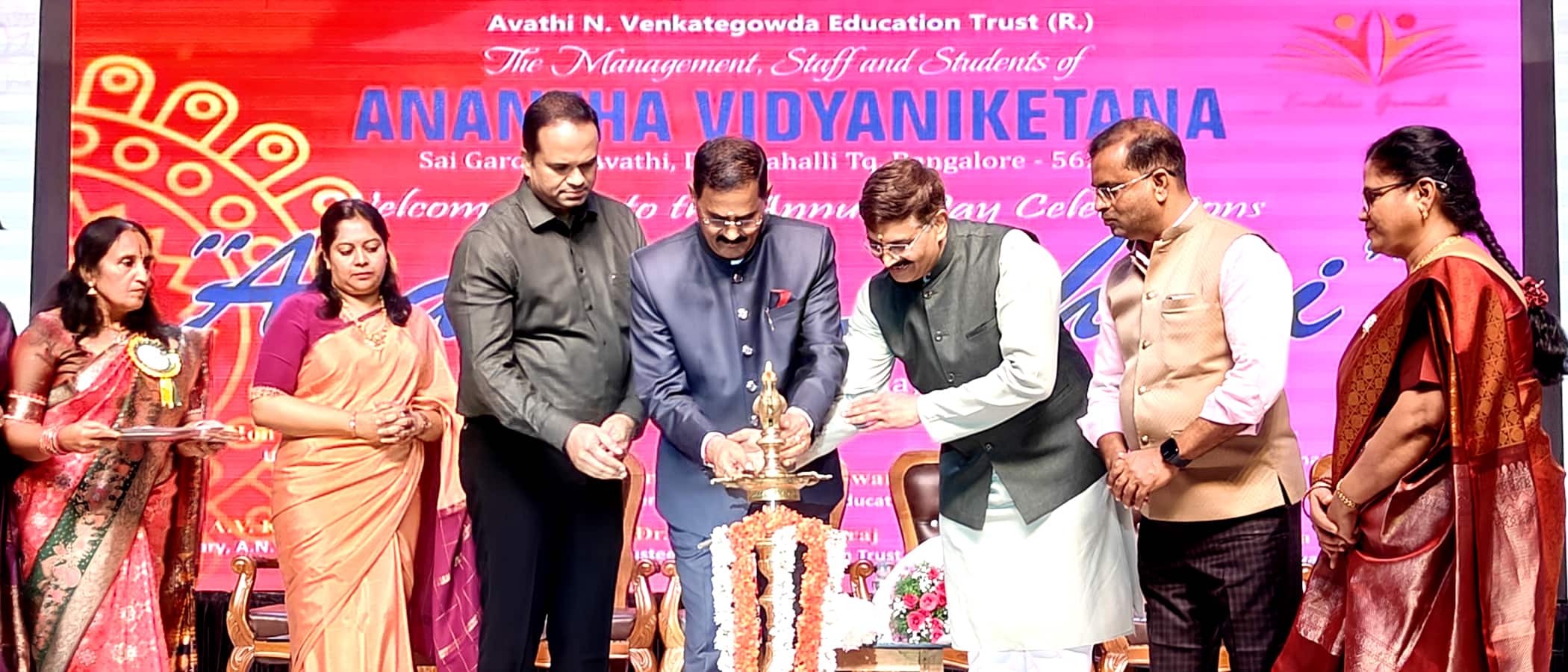 ದೇವನಹಳ್ಳಿ ತಾಲೂಕಿನ ಆವತಿ ಸಮೀಪದ ಅನಂತ ವಿದ್ಯಾನಿಕೇತನ ಶಾಲೆಯ ಅನಂತ ಲಹರಿ ಕಾರ್ಯಕ್ರಮನ್ನು ಉಪಲೋಕಾಯುಕ್ತ ನ್ಯಾಯಮೂರ್ತಿ ಬಿ.ವೀರಪ್ಪ ಹಾಗೂ ಇತರರು ಉದ್ಘಾಟಿಸಿದರು.