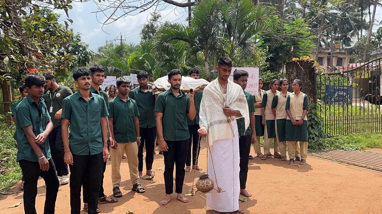 ಕಾಲೇಜಿನ ಮೈದಾನದಲ್ಲಿ ಅಣಕು ಶವ ಇಟ್ಟು ಅದರ ಎದುರುಗಡೆ ವಿದ್ಯಾರ್ಥಿ ಹಾಗೂ ವಿದ್ಯಾರ್ಥಿನಿಯರು ಕುಳಿತು ಕಣ್ಣೀರು ಸುರಿಸಿ, ಸರ್ಕಾರದ ನೀತಿ ಖಂಡಿಸಿ, ಆಕ್ರೋಶ ವ್ಯಕ್ತಪಡಿಸಿದರು.ಅಣಕು ಶವಯಾತ್ರೆಯ ಉದ್ದೇಶವು ಸರ್ಕಾರವು ಆದೇಶ ಬದಲಾಯಿಸದಿದ್ದರೆ ಮತ್ತು ಸ್ಪಂದಿಸದಿದ್ದರೆ ಅರಣ್ಯ ವಿದ್ಯಾರ್ಥಿಗಳಿಗೆ ಮುಂದೆಯೂ ಇದೇ ಪರಿಸ್ಥಿತಿ ಬರುತ್ತದೆ. ಓದಿಗೆ ಬೆಲೆ ಇಲ್ಲದೇ ಮುಂದೊಂದು ದಿನ ಅರಣ್ಯ ವಿದ್ಯಾರ್ಥಿಗಳ ಭವಿಷ್ಯ ಈ ರೀತಿ ಆಗಲಿದೆ. ಶವರ ಮುಂದೆ ಕಣ್ಣೀರಿಡುವ ಸ್ಥಿತಿ ನಿರ್ಮಾಣವಾಗಲಿದ್ದು, ರಾಜ್ಯ ಸರ್ಕಾರ ಹಾಗೂ ಅರಣ್ಯ ಸಚಿವ ಈಶ್ವರ ಖಂಡ್ರೆ ಅರಣ್ಯಶಾಸ್ತ್ರ ವಿದ್ಯಾರ್ಥಿಗಳ ರೋಧನ ಆಲಿಸಿ, ಅರಣ್ಯಶಾಸ್ತ್ರ ಪದವಿಯನ್ನೇ ಕನಿಷ್ಠ ವಿದ್ಯಾರ್ಹತೆಯನ್ನಾಗಿ ಮಾಡಬೇಕೆಂದು ಶಿರಸಿ ಅರಣ್ಯ ಮಹಾವಿದ್ಯಾಲಯದ ವಿದ್ಯಾರ್ಥಿಗಳು ಒತ್ತಾಯಿಸಿದರು.ಆರೋಗ್ಯ ತಪಾಸಣೆಗೆ ಬಂದ ಆರೋಪಿ ಪರಾರಿ: