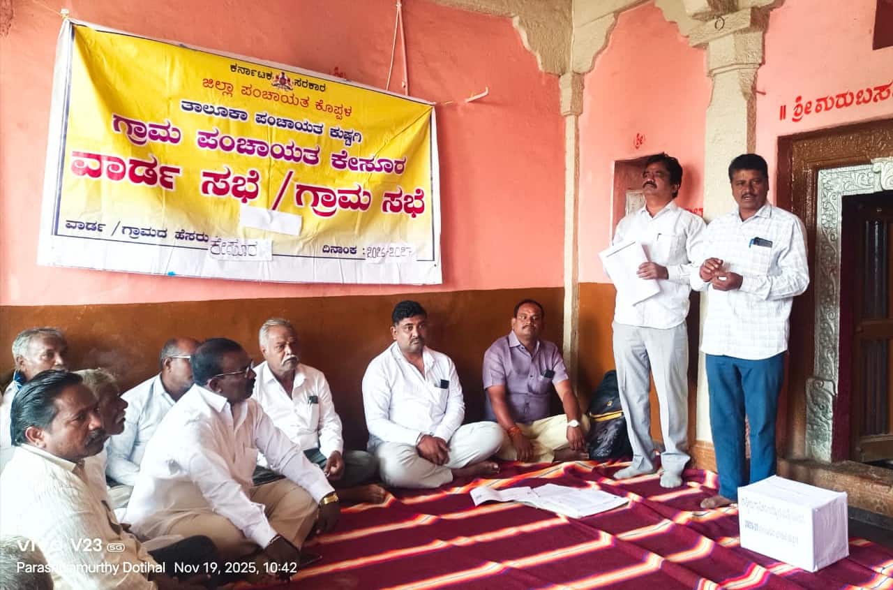 ಕುಷ್ಟಗಿ: ತಾಲೂಕಿನ ಕೇಸೂರು ಗ್ರಾಮದ ಬಸವೇಶ್ವರ ದೇವಸ್ಥಾನದಲ್ಲಿ ಕೇಸೂರು ಗ್ರಾಮ ಪಂಚಾಯಿತಿ ವ್ಯಾಪ್ತಿಯ ಕೇಸೂರು ಗ್ರಾಮದ 1ನೇ ವಾರ್ಡಿನ ವಾರ್ಡ್ ಸಭೆ ನಡೆಯಿತು.