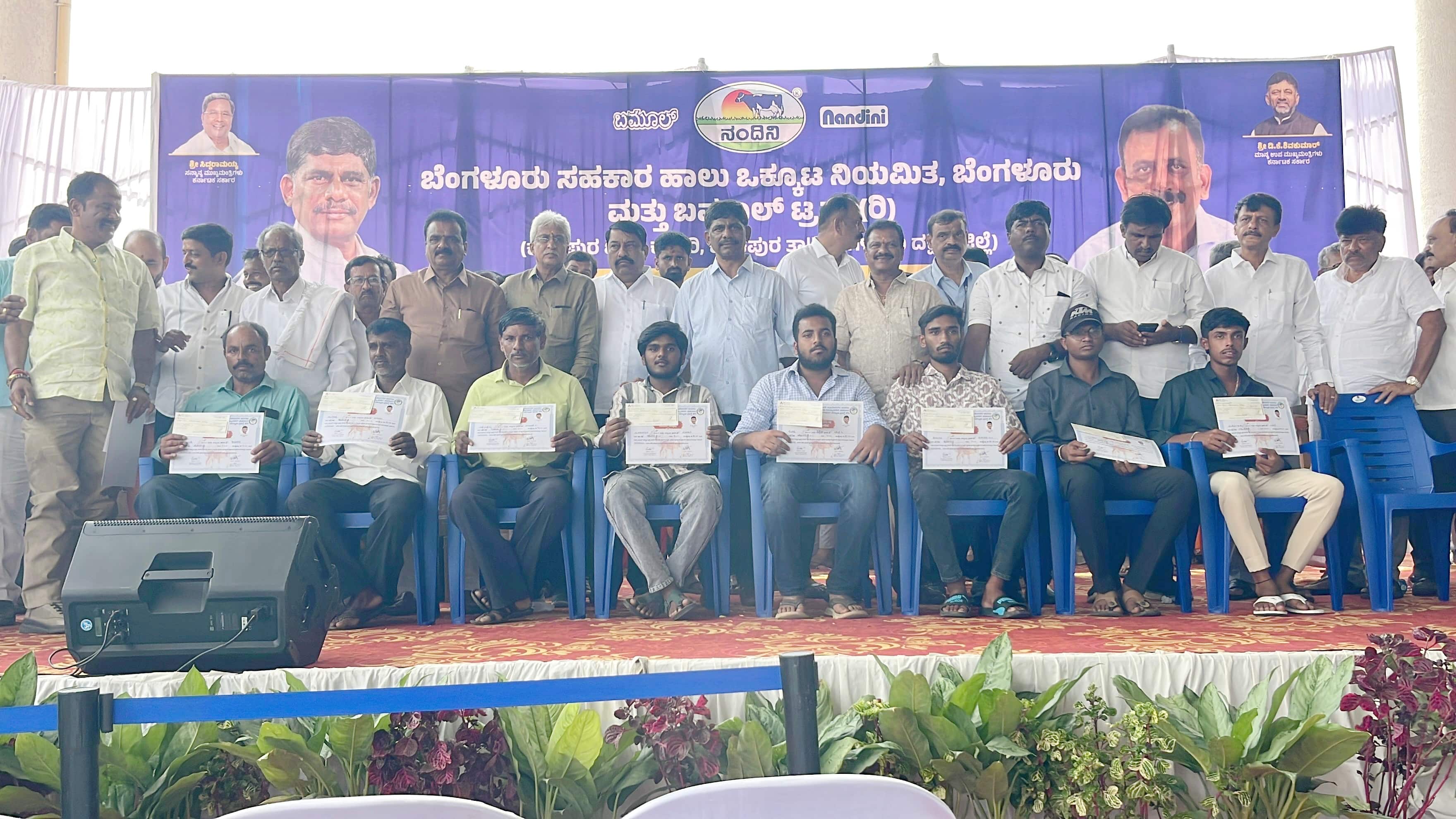 ಸಮಾರಂಭದಲ್ಲಿ 500 ವಿದ್ಯಾರ್ಥಿಗಳು, 900 ಕಾರ್ಮಿಕರು, 1800 ಜನ ಹೊರಗುತ್ತಿಗೆ ನೌಕರರು ಸೇರಿದಂತೆ ಸಂಘ ಸದಸ್ಯರನ್ನು ಗೌರವಿಸಲಾಯಿತು.ಕಾರ್ಯಕ್ರಮದಲ್ಲಿ ವಿಧಾನ ಪರಿಷತ್ ಸದಸ್ಯ ಎಸ್.ರವಿ, ಬಮೂಲ್ ಉಪಾಧ್ಯಕ್ಷ ರಾಜಣ್ಣ, ನಿರ್ದೇಶಕ ಹರೀಶ್ ಕುಮಾರ್, ಮುನಿರಾಜು, ಕೃಷ್ಣಯ್ಯ, ಬೈರೇಗೌಡ, ಲಿಂಗೇಶ್ ಕುಮಾರ್, ಕೆ.ಆರ್.ರಮೇಶ್, ಸತೀಶ್ ಗೌಡ, ಪಿ.ನಾಗರಾಜು, ಬಮೂಲ್ ವ್ಯವಸ್ಥಾಪಕ ನಿರ್ದೇಶಕ ಡಾ.ಎಚ್.ಸಿ.ಸುರೇಶ್, ಮುಖಂಡರಾದ ಎಚ್.ಕೆ.ಶ್ರೀಕಂಠು, ದಿಲೀಪ್, ಕೆ.ಆರ್.ಮಧು, ಬಮೂಲ್ ಒಕ್ಕೂಟದ ಸಿಬ್ಬಂದಿ ಹಾಗೂ ಕಾಂಗ್ರೆಸ್ ಮುಖಂಡರು ಉಪಸ್ಥಿತರಿದ್ದರು.