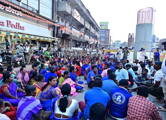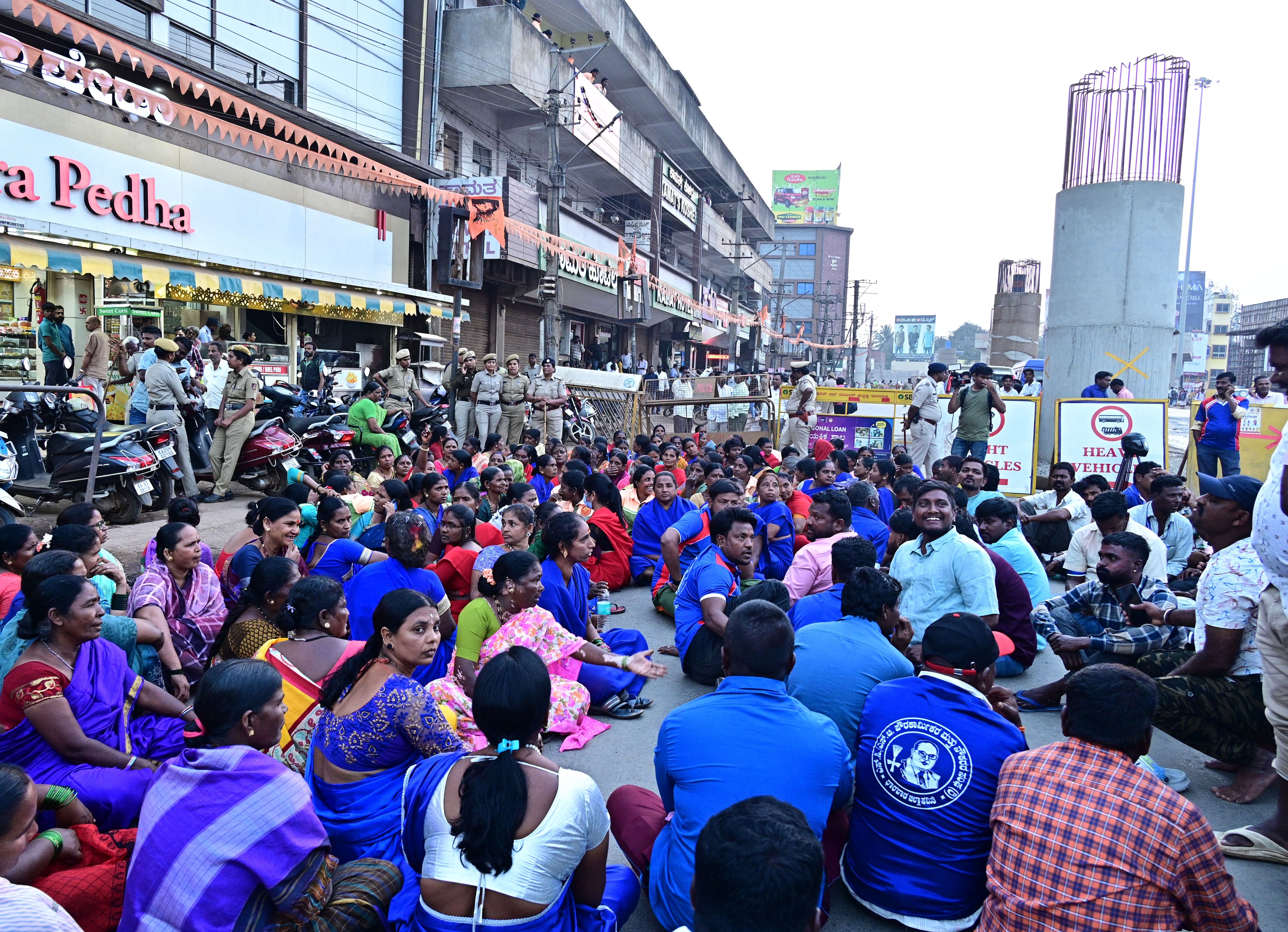 ಇಲ್ಲಿನ ಜನತಾ ಬಜಾರ್ನ ಮೂರನೇ ಮಹಡಿಯಲ್ಲಿ ಧಾರವಾಡ ಜಿಲ್ಲಾ ಪರಿಶಿಷ್ಟ ಜಾತಿ, ಪರಿಶಿಷ್ಟ ಪಂಗಡಗಳ ಪೌರಕಾರ್ಮಿಕರ ಮತ್ತು ನೌಕರರ ಸಂಘದ ಕಚೇರಿ ಉದ್ಘಾಟನೆ ಕಾರ್ಯಕ್ರಮ ದಿಢೀರ್ ಬಂದ್ ಮಾಡಿದ ಮಹಾನಗರ ಪಾಲಿಕೆ ಕ್ರಮವನ್ನು ಖಂಡಿಸಿ ಪೌರಕಾರ್ಮಿಕರು ರಾಯಣ್ಣ ವೃತ್ತದ ಬಳಿ ಬುಧವಾರ ಪ್ರತಿಭಟನೆ ನಡೆಸಿದರು.ಇಲ್ಲಿನ ರಾಯಣ್ಣ ವೃತ್ತದಿಂದ ಚೆನ್ನಮ್ಮ ವೃತ್ತದ ಮಾರ್ಗದ ರಸ್ತೆ ಸಂಚಾರವನ್ನು ಕೆಲಕಾಲ ತಡೆದು ಆಕ್ರೋಶ ವ್ಯಕ್ತಪಡಿಸಿದರು. ಇದರಿಂದ ಕೆಲಕಾಲ ಸಂಚಾರಕ್ಕೆ ತೊಂದರೆಯಾಯಿತು. ಮುಂಜಾಗ್ರತಾ ಕ್ರಮವಾಗಿ ಪೊಲೀಸರು ಜನತಾ ಬಜಾರ್ ಕಟ್ಟಡದ ಸುತ್ತಮುತ್ತ ಭದ್ರತೆ ಒದಗಿಸಿದ್ದರು. ಸಂಘದ ಕಚೇರಿಗೆ ಪ್ರವೇಶ ನಿಷೇಧಿಸಿದ್ದರು.