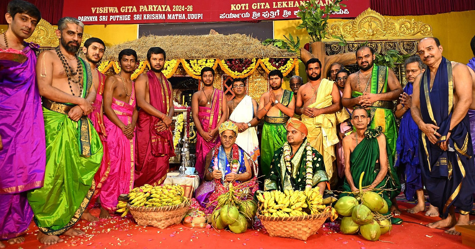 ಉಡುಪಿ: ಪರ್ಯಾಯ ಪೀಠಾಧೀಶ, ಪುತ್ತಿಗೆ ಮಠಾಧೀಶ ಶ್ರೀ ಸುಗುಣೇಂದ್ರ ತೀರ್ಥ ಶ್ರೀಪಾದರ ಚತುರ್ಥ ಪರ್ಯಾಯದ ಜ್ಞಾನ ಸತ್ರದ ಅಂಗವಾಗಿ ಸುಧಾಗೀತಾದಿ ಪಾಠಪಂಚಕ ಹಾಗೂ ಮಂಗಲ ಮಹೋತ್ಸವ, ಗುರುವಂದನೆ ಕಾರ್ಯಕ್ರಮ ರಾಜಾಂಗಣದಲ್ಲಿ ಶುಕ್ರವಾರ ನಡೆಯಿತು.