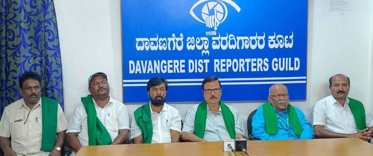 ದಾವಣಗೆರೆಯಲ್ಲಿ ಶುಕ್ರವಾರ ರಾಜ್ಯ ರೈತ ಮುಖಂಡ ಕುರುಬೂರು ಶಾಂತಕುಮಾರ ಸುದ್ದಿಗೋಷ್ಠಿಯಲ್ಲಿ ಮಾತನಾಡಿದರು.;Resize=(128,128))