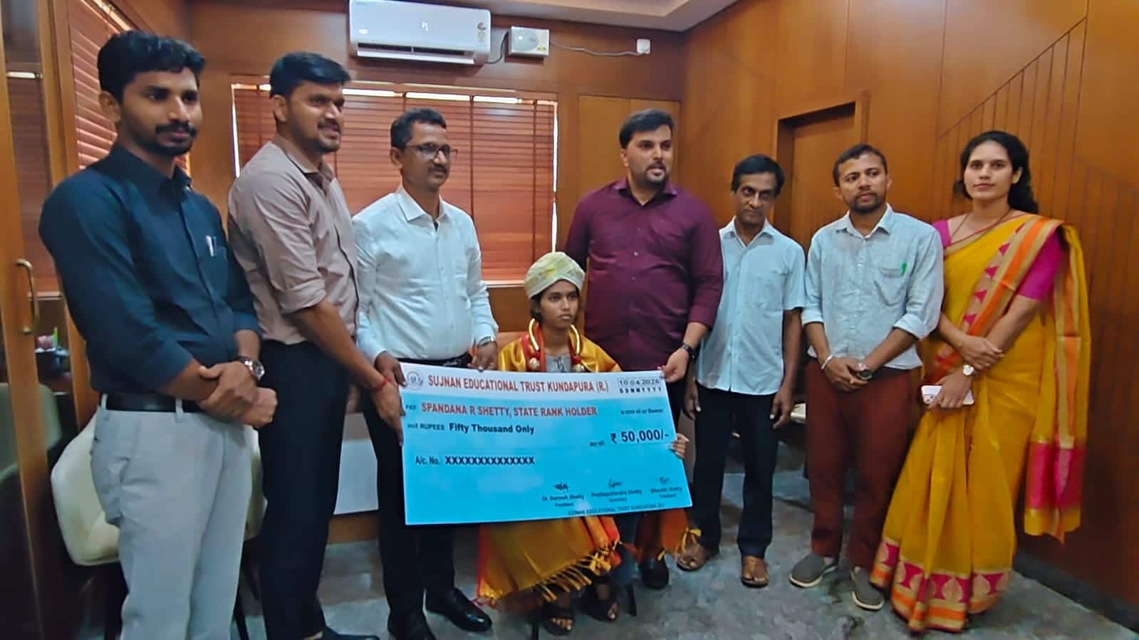 Sugnan PU College: State level achiever Spandana Shetty gets Rs. 50,000 cash prize