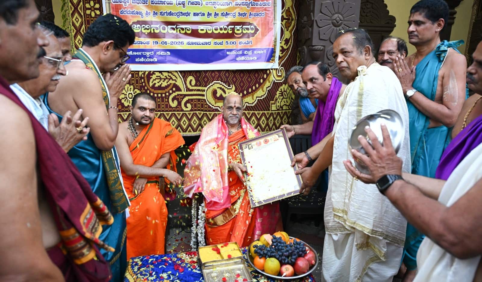 ಉಡುಪಿ: ತಮ್ಮ ಚತುರ್ಥ ಶ್ರೀ ಕೃಷ್ಣ ಪೂಜಾ ಪರ್ಯಾಯವನ್ನು ಯಶಸ್ವಿಯಾಗಿ ಪೂರೈಸಿದ ಪುತ್ತಿಗೆ ಮಠದ ಶ್ರೀ ಸುಗುಣೇಂದ್ರ ತೀರ್ಥ ಶ್ರೀಪಾದರು ಮತ್ತು ಶ್ರೀ ಸುಶ್ರೀಂದ್ರ ತೀರ್ಥ ಶ್ರೀಪಾದರನ್ನು ಪಣಿಯಾಡಿ ಅನಂತ ಪದ್ಮನಾಭ ಸನ್ನಿಧಾನದಲ್ಲಿ ಭಕ್ತಾಭಿಮಾನಿಗಳ ವತಿಯಿಂದ ವೈಭವದ ಅಭಿನಂದಿಸಲಾಯಿತು.