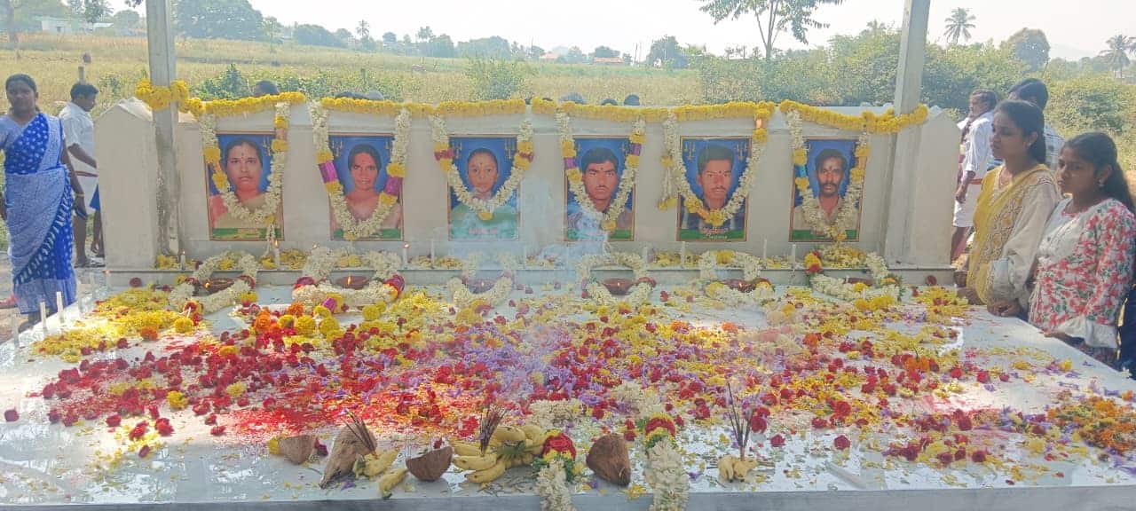 ಕಳೆದ ಏಳು ವರ್ಷಗಳ ಹಿಂದೆ ಧಾರ್ಮಿಕ ಕ್ಷೇತ್ರವಾದ ಸುಳ್ವಾಡಿ ಕಿಚ್ಚುಗುತ್ತಿ ಮಾರಮ್ಮನ ದೇವಾಲಯದಲ್ಲಿ ವಿಷ ಪ್ರಸಾದ ತಿಂದ 17 ಜನ ಎಂ ಟಿ ದೊಡ್ಡಿ , ಬಿದರಹಳ್ಳಿ, ದೊರೆಸ್ವಾಮಿಮೇಡು, ಕೋಟೆಪೊದೆ, ಸುಳ್ಳಾಡಿ ಗ್ರಾಮಗಳಲ್ಲಿ ಮೃತಪಟ್ಟಂತ ಕುಟುಂಬಸ್ಥರಿಗೆ 7 ವರ್ಷಗಳಿಂದಲೂ ಇಲ್ಲಿನ ಸಂತ್ರಸ್ತರು ಮತ್ತು ಕುಟುಂಬಸ್ಥರು ಸ್ಮರಣಾರ್ಥ ಕಾರ್ಯಕ್ರಮವನ್ನು ಮಾಡಿಕೊಂಡು ಬರುತ್ತಿದ್ದಾರೆ. ಸರ್ಕಾರ ಇತ್ತ ಗಮನ ಹರಿಸಿ ನೀಡಿದ ಭರವಸೆಯನ್ನು ಇನ್ನು ಈಡೇರಿಸಿಲ್ಲ ಎಂದು ಆರೋಪಿಸಿದರು. ಮಾಸದ ನೆನಪು:ವಿಷ ಪ್ರಸಾದದಿಂದ ತಮ್ಮ ಕುಟುಂಬದವರನ್ನು ಕಳೆದುಕೊಂಡು 17 ಜನ ಮೃತಪಟ್ಟಿರುವ ಇಲ್ಲಿನ ಕುಟುಂಬಸ್ಥರು ಹಾಗೂ 120ಕ್ಕೂ ಹೆಚ್ಚು ಸಂತ್ರಸ್ತರು ವಿವಿಧ ನೂನ್ಯತೆಗಳಿಂದ ಬಳಲುತ್ತಿದ್ದಾರೆ. ಹೀಗಾಗಿ ಗ್ರಾಮದಲ್ಲಿ ಇನ್ನೂ ಸಹ 17 ಜನ ಸಾವನ್ನಪ್ಪಿರುವ ಮಾಸದ ನೆನಪು ಇಲ್ಲಿನ ಕುಟುಂಬಸ್ಥರನ್ನು ಬೆಂಬಿಡದೆ ಕಾಡುತ್ತಿದೆ. ಹೀಗಾಗಿ 7ನೇ ವರ್ಷದ ಸ್ಮರಣಾರ್ಥ ಕಾರ್ಯಕ್ರಮದ ಅಂಗವಾಗಿ ಸಾಮೂಹಿಕವಾಗಿ ಅಂತ್ಯಕ್ರಿಯೆ ನಡೆದ ಬಿದರಳ್ಳಿ ಗ್ರಾಮದಲ್ಲಿ ಸಮಾಧಿ ಪೂಜೆ ಸಲ್ಲಿಸಲಾಗಿದೆ ಎಂದರು.