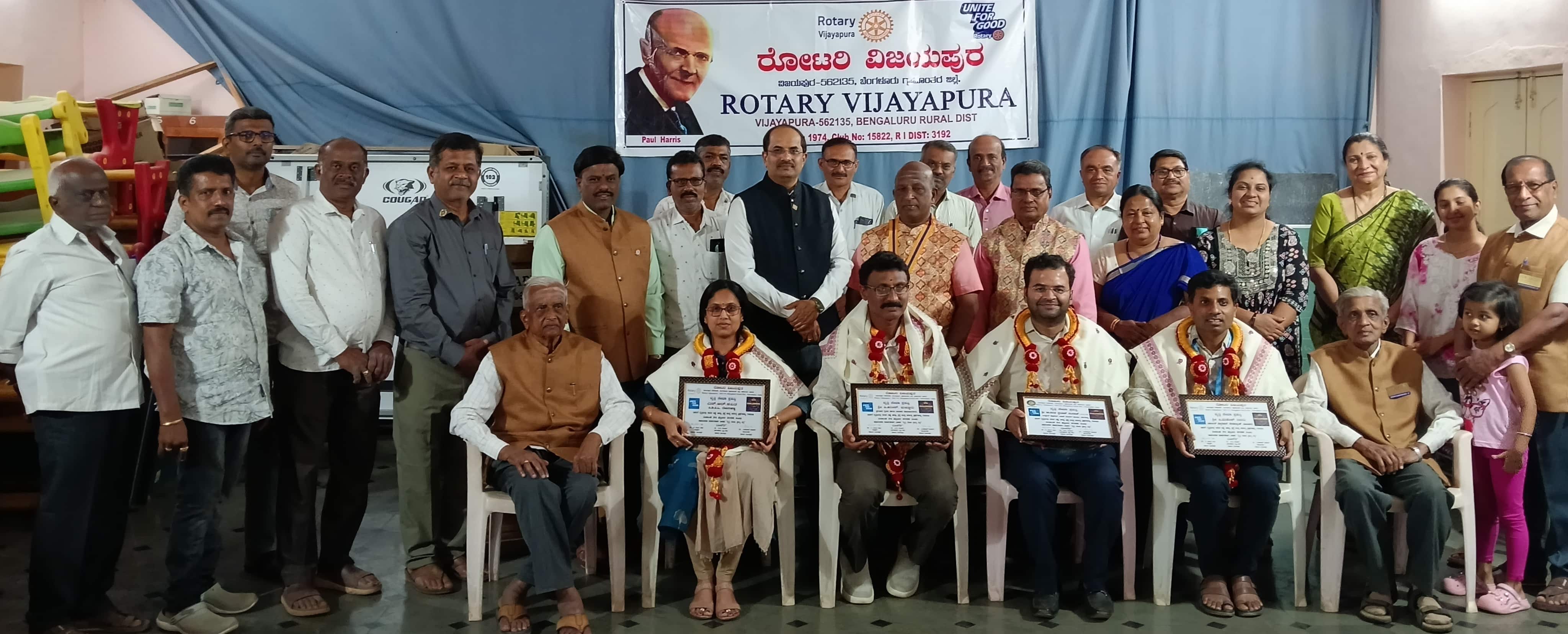 ವಿಜಯಪುರ ರೋಟರಿ ಸಂಸ್ಥೆ ಸಂಸ್ಥಾಪಕ ಸದಸ್ಯ ಹಾಗೂ ರೋಟರಿ ಸಂಸ್ಥೆಯಲ್ಲಿ ೫೦ ವರ್ಷ ಸೇವೆ ಸಲ್ಲಿಸಿದ ಕೆ. ಸಯೋಜಾತಪ್ಪ, ಚೆನ್ನಪ್ಪ, ಸಿದ್ದರಾಜು, ಸಿ.ಬಸಪ್ಪರನ್ನು ಜಿಲ್ಲಾ ರೋಟರಿ ಸಂಸ್ಥೆಯಿಂದ ಸನ್ಮಾನಿಸಿ ಗೌರವಿಸಲಾಯಿತು.
